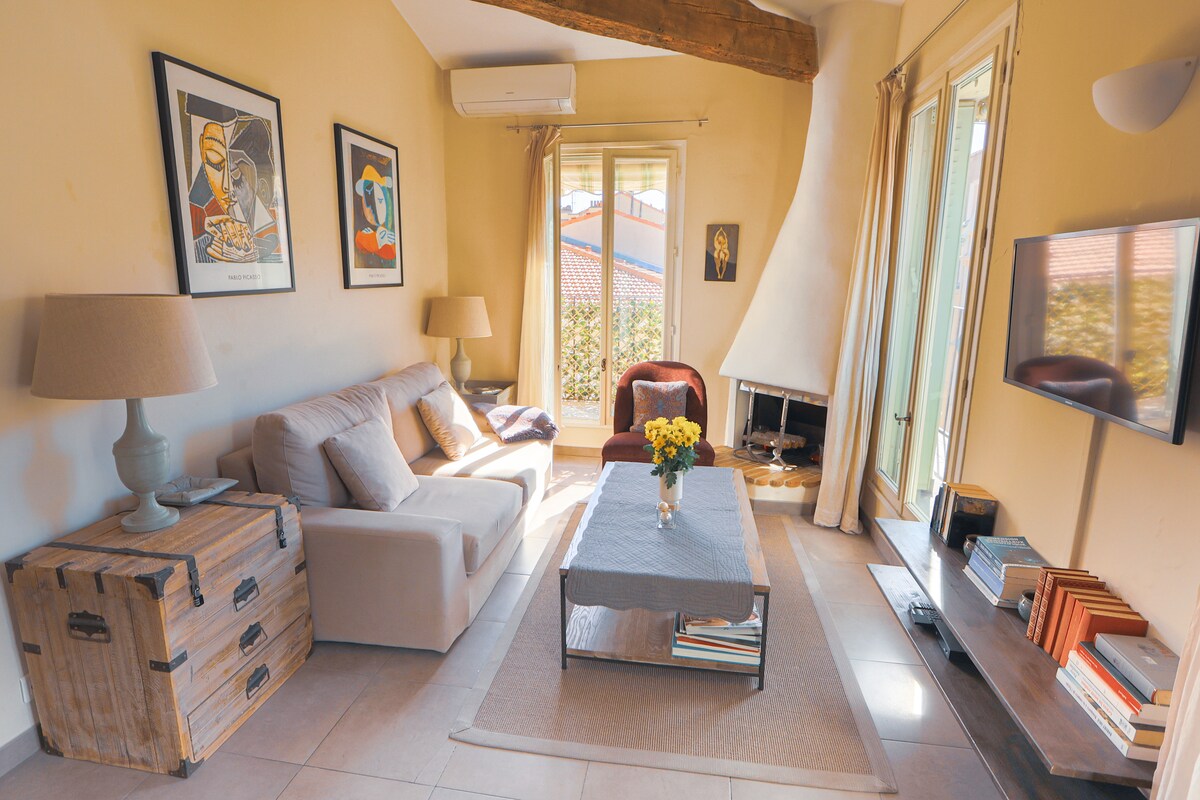 Cozy 2BDR/2BTH above Provençal market with AC