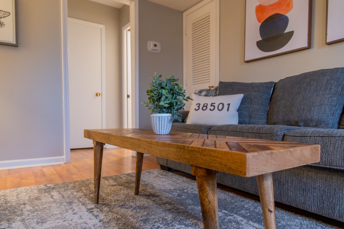 이 콘도는 시내, 크로스핏 메이헴, 4개의 골프 코스, 대학교, 병원, 비즈니스 지구, 훌륭한 식사 장소에서 불과 몇 분 거리에 있습니다. 침실 2개, 욕실 1.5개, 와이파이, 계절 수영장을 갖추고 있어 쿠크빌에서 머무르기에 좋은 숙소입니다! 주방, 거실, 세탁실, 화장실이 1층에 있습니다. 위층에는 넓은 킹사이즈 마스터 침실, 퀸사이즈 침대가 있는 두 번째 침실, 넓은 옷장, 욕실이 있습니다.