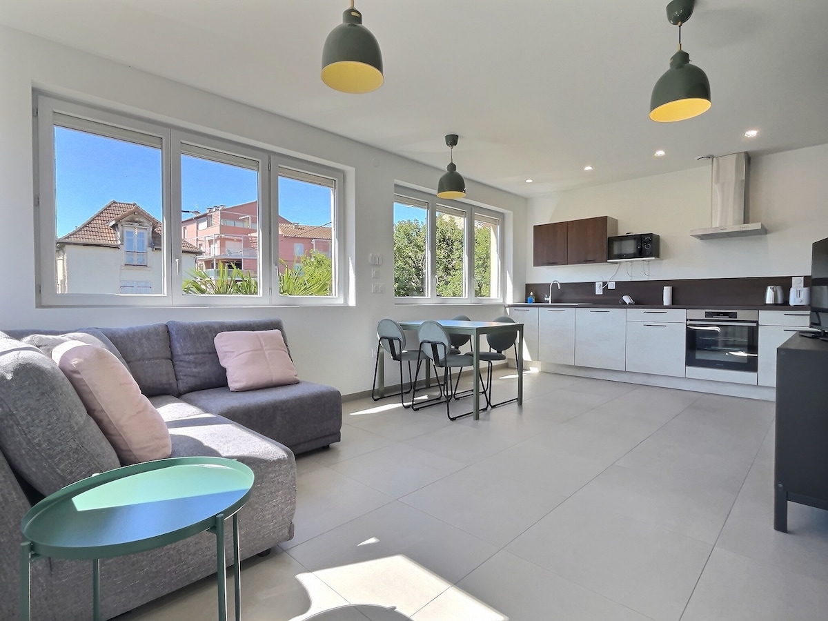 마코네 시내 중심가의 진짜 고치인 르 코티지에 오신 것을 환영합니다. 이 아파트에는 아름답고 넓은 이국적인 테라스가 있어 프랑스에서 만든 진짜 전원주택으로 이동할 수 있습니다. 시설이 완비된 주방, 호텔 침구, 편안한 소파를 마음껏 이용하실 수 있습니다. 인테리어 디자이너가 리노베이션한 모든 것이 웰빙을 위해 고안되었습니다. 이 평화로운 고치는 머무는 동안 평화로울 것입니다. 🔐셀프 체크인 🛌 침구와 수건 네스프레소 ☕️ 포드