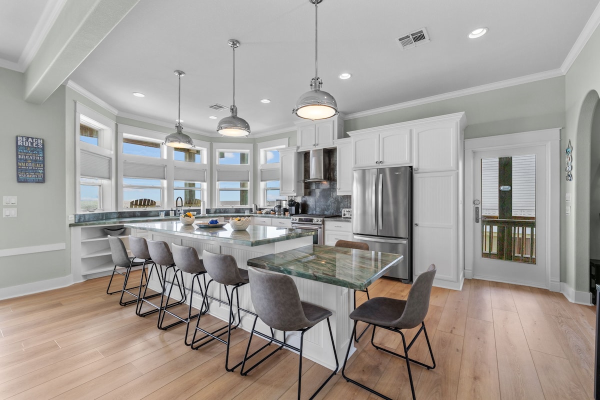 Welcome to Seas The Moment! Relax with the family and friends in this beautiful 4 bedroom/4.5 bath beachfront retreat. Gorgeous views from every room! Brand new Tiki bar! Open concept living spaces. All bedrooms have incredible ocean views and en suite baths. Upper deck is directly accessible from all upstairs bedrooms. Rare true elevator with access to all floors. Beach access is steps from the home. We are the closest beachfront house to the Big Store, where you can find anything you need!