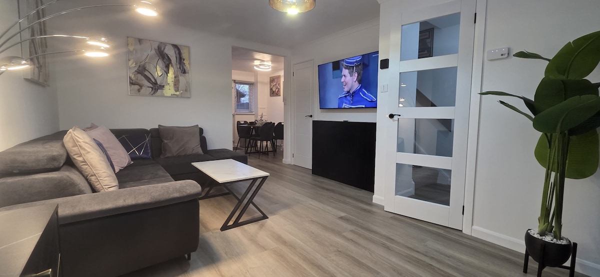 조용한 동네에 있는 밝고 현대적인 가족 숙소. 노상 주차가 가능하며 파티오 공간이 있는 전용 뒤쪽 정원이 있습니다. 아이가 있는 가족이나 커플에게 적합한 숙소입니다. 서머리 헤리티지 박물관, 아이스링크와 워터파크, 코트브리지 타운 센터가 있는 타임 캡슐 레저 센터가 도보로 가까운 거리에 있습니다. 또한 서니사이드 기차역에서 도보로 단 10분 거리에 있으며, 글래스고, 에든버러, 발로치 로몬드까지 직통 열차가 연결되어 있습니다.