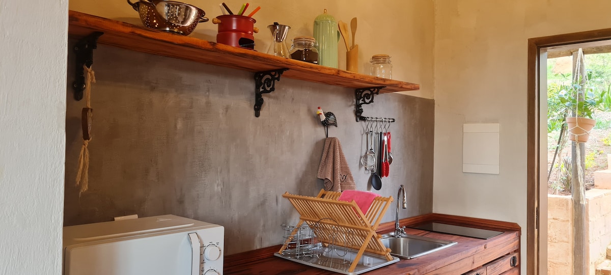 ‘Casinha’, assim chamada carinhosamente por nós. Casa de roça confortável sem perder a originalidade. Rodeada pela natureza com uma vista encantadora para um vale de montanhas e o som de um pequeno riacho ao fundo. Você pode aproveitar a lareira, fogão a lenha e uma charmosa varanda bem frequentada por beija-flores. O gramado que rodeia a casa é perfeito para tomar um solzinho, apreciar o céu estrelado, fazer almoços integrado a natureza ou simplesmente descansar nas espreguiçadeiras.