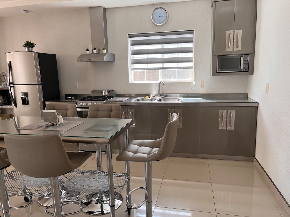 Alojamiento ideal para quienes viajan por trabajo o estancias prolongadas, aquí encontrarás una estancia cómoda y funcional. Tendrás un espacio privado, amplio y totalmente equipado donde puedes sentirlo como tu hogar, ademas de cochera techada y portón eléctrico para llegar sin problemas de estacionamiento y sentirte seguro desde el primer día.