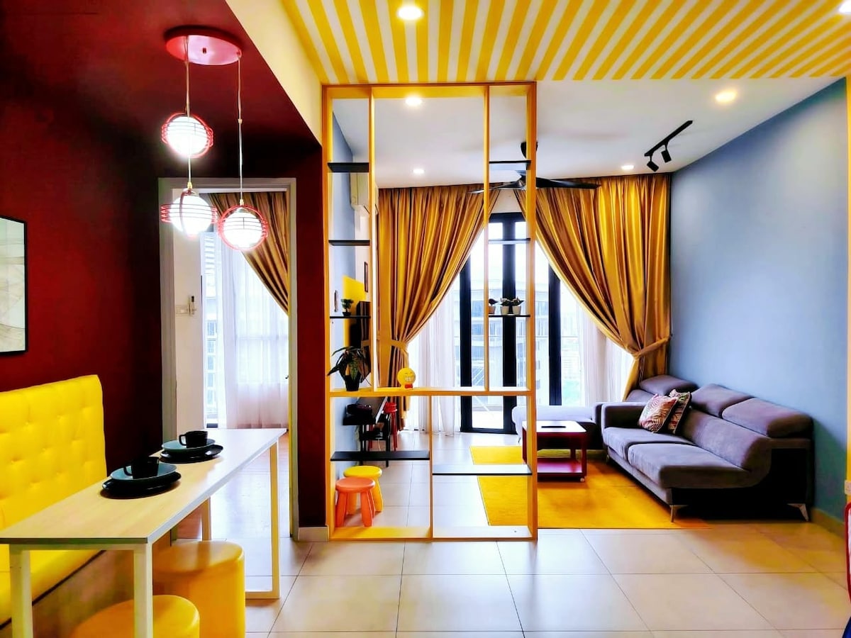 아늑하고 편안하며 넓은 아파트. 이 숙소는 20층에 위치해 있으며, 푸촌의 멋진 도시 및 산 전망을 자랑하며 최대 11명까지 수용할 수 있습니다. 출장자, 가족 스테이케이션, 자녀와 유대감을 형성하고자 하는 부모에게 적합합니다. 푸촌 한가운데에 편리하게 위치하고 있으며, 레스토랑, 영화관, 편의점, LRT, IOI 몰, 선웨이 피라미드, 선웨이 라군, 파빌리온 2 부킷잘릴, IOI 시티 몰 등에 쉽게 접근할 수 있습니다.