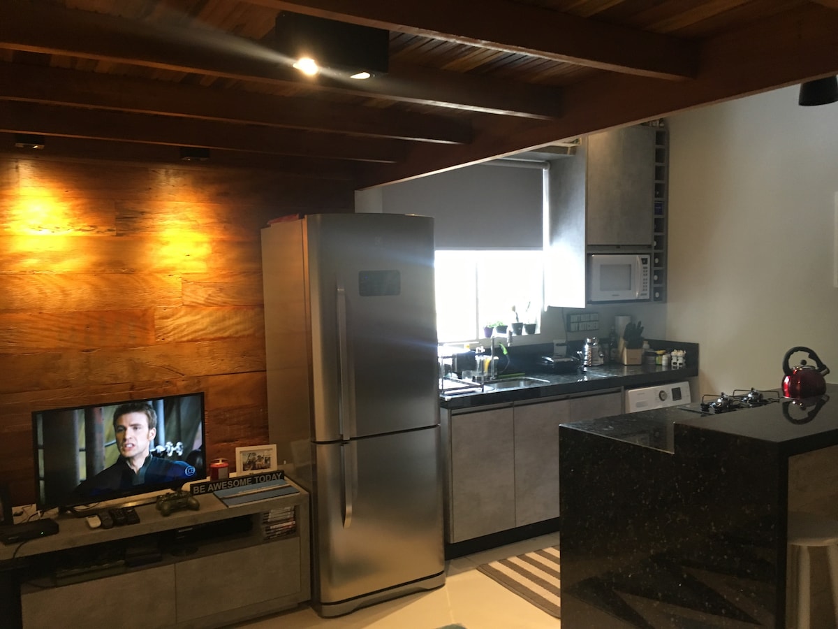 Venha se hospedar nesse loft completo e repleto de estilo. Wi-Fi, TV smart, PlayStation 4, Ar-condicionado , área de serviço completa, sala com cozinha americana, uma suíte e um quarto Mezanino! Cozinha completa, forno, cooktop, microondas, geladeira e utensílios para cozinhar. ESSA HOSPEDAGEM NÃO TEM GARAGEM INCLUSA Antes do check-in, é Obrigatório que todos os hóspedes forneçam as seguintes informações: Nome completo, CPF, RG, endereço, telefone e e-mail