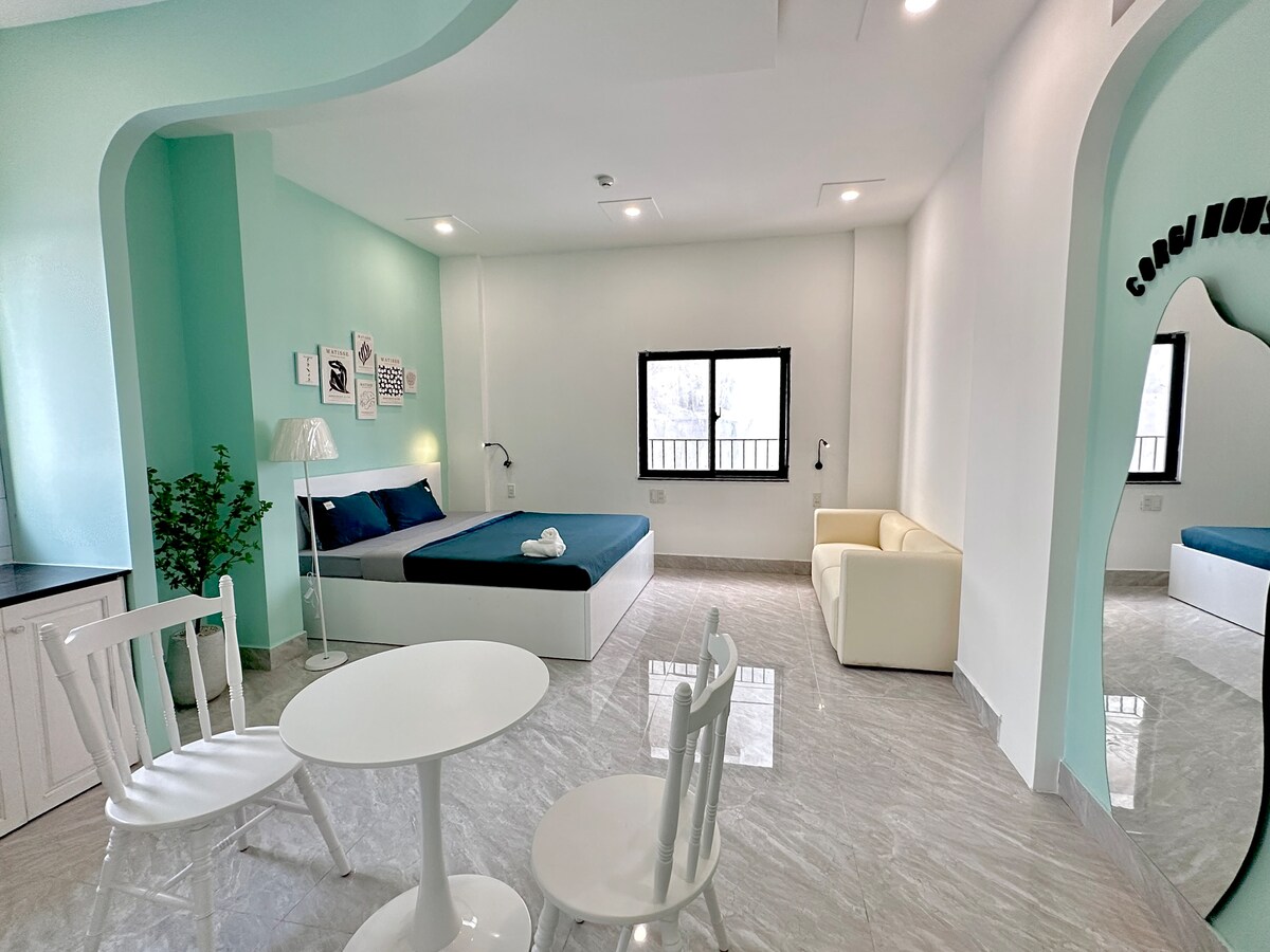 Autumn retreat — warm tones, soft textures, and cozy corners made for slow mornings & movie nights. Our 1BR is spacious w/ comfy sofa bed, and a full kitchen that you can whip up a meal before streaming Netflix on the 100-inch projector screen. Tucked in a quiet cul-de-sac by Han Market and just minutes from Dragon Bridge, it offers both city life and peace Clean, calm, and stylish — like golden hour captured in a room. Take the elevator up, drop your bags, and let Da Nang slow down for you.