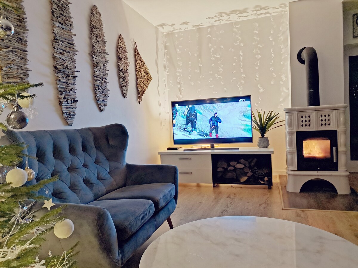 테라스, 정원, 멋진 자연 전망을 감상할 수 있는 2층 주택입니다. 침실 4개, 욕실 3개, 주방 2개, 벽난로가 있는 넓은 거실. 모든 것이 신선하고 기능적으로 가구가 배치되어 있습니다. 정원에는 잔디밭, 숲, 벽난로, 그릴, 라운저, 해먹, 그네가 있습니다. 북적거리는 도시에서 벗어나 가족이나 친구와 함께 즐기기에 완벽한 숙소입니다. 바로 옆에는 이웃이 없습니다. 숲, 호수, 자전거 트레일, 카약 트레일이 근처에 있습니다. 대규모 파티 금지.