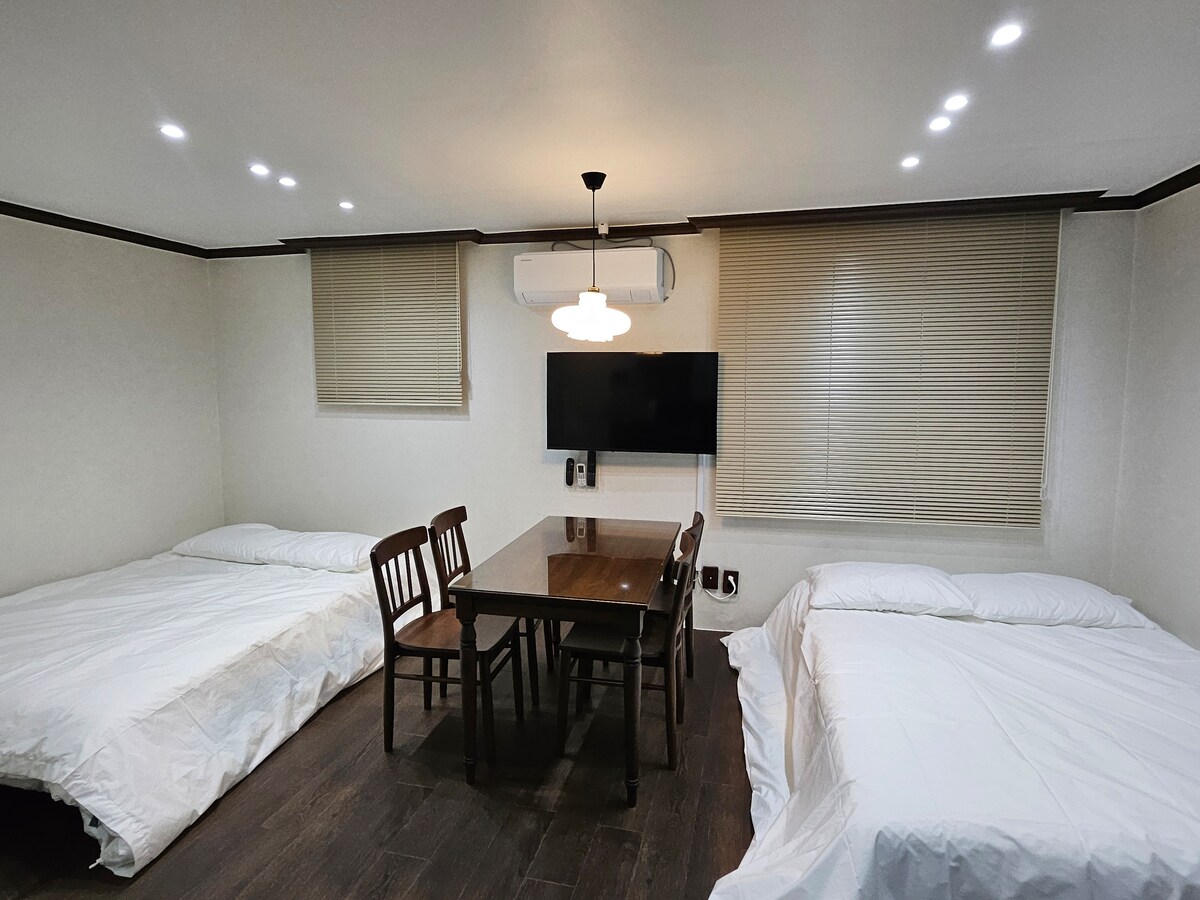๋ฌ๋ธ์คํผ์ค๋ ํ๋ฒํ ์ฃผํ ๊ฐ์ ์ง์ ๋๋ค :-) ์กฐ์ฉํ ์ฃผํ๊ฐ์ ์์นํ ์ฅํ๋ฐฉ์ด์์. ๋ฐ๋ปํ๊ณ ๋จ์ ํ ๊ณต๊ฐ์์ ์กฐ์ฉํ ์ผ์ ๋๋ฆด ์ ์๋ ๊ณต๊ฐ์ด๋๋๋ค. ํ๋์ ๋ณด๋ฉฐ ์ด ์ ์๋ ํ ๋ผ์ค ๊ณต๊ฐ์ด ๋ง๋ จ๋์ด ์์ด์. (๊ฒจ์ธ ๋์์ ๋ฐ๋ฒ ํ๋ฅผ ์ด์ํ์ง ์์ต๋๋ค.) โฅMONDAY EARLY CHECH-IN ๋ฌ๋ธ์คํผ์ค๋ ๋งค์ฃผ ์ผ์์ผ์ ์์ฝ์ ๋ฐ์ง ์์์. (ํ ์์ผ๋ถํฐ์ ์ฐ๋ฐ์ ๊ฐ๋ฅํ๋ ๋ฐ๋ก ๋ฌธ์ ์ฃผ์ธ์!) ํ์ ์ฒดํฌ์ธ ์๊ฐ์ 3pm ์ด์ง๋ง ์์์ผ์ ๋ฐฉ๋ฌธํ์๋ ๋ถ๋ค์ 12pm ๋ถํฐ ์ผ๋ฆฌ์ฒดํฌ์ธ์ด ๊ฐ๋ฅํ๋ต๋๋ค. ๋น์ผ ์ฒดํฌ์ธ ์๋ด ๋ฉ์์ง์ ์๊ด ์์ด 12์ ์ดํ ๋ถํฐ ๋ฐฉ๋ฌธํ์๋ฉด ๋ฉ๋๋ค. :-)