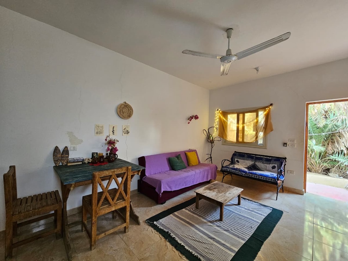 양과 염소로 둘러싸인 다합의 소박한 지역에 위치한 밝고 햇살이 가득한 정원이 있는 침실 1개짜리 아파트입니다. 일광욕, 원예, 마음의 평화를 좋아하는 사람들을 위한 숙소입니다. 새로운 주방 가전제품으로 완비되고 새롭게 리모델링되었습니다. 바다까지 도보로 5분 거리입니다. 시나 시장까지 도보 5분. 궁금하신 점이 있으면 최선을 다해 도와드리겠습니다. 천만에요. 즐거운 시간 되세요.
