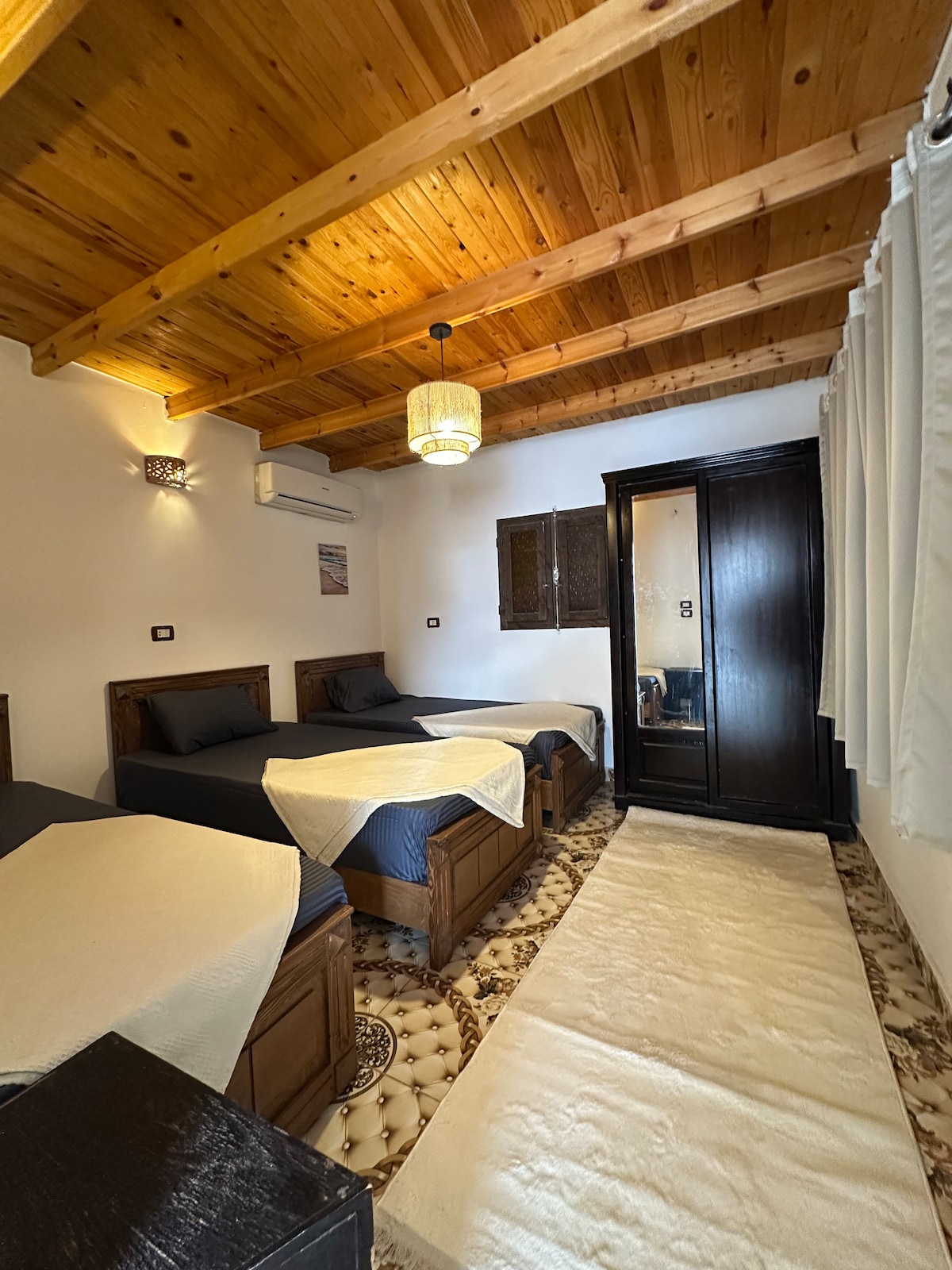 Strategically located in the heart of Dahab Manara In the heart of restaurants and cafes Less than 3 minutes from the beach. It features two bedrooms, one with a king-size bed and the other with two twin beds, a wardrobe, a fully equipped kitchen, and a living room. Hot tub Fully equipped kitchen with all appliances Minutes from the sea and steps away from shops, beaches, and diving centers *The accommodation does not include electricity to charge the card according to your personal us