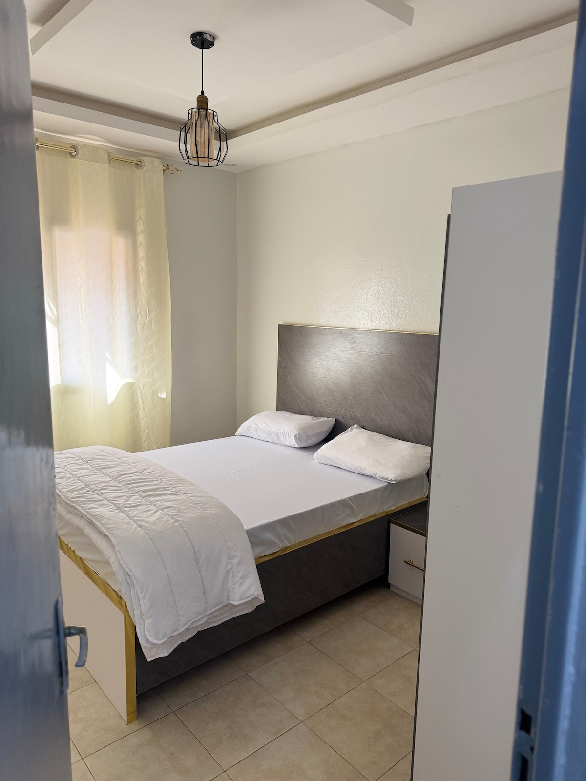 이 아파트에는 에어컨이 설치된 침실과 천장 선풍기가 있는 작은 거실이 있습니다. 아파트는 다음과 같이 분해됩니다. 에어컨이 설치된 침실 1개 (무료 5000fcfa 카드, 5000fcfa의 요금이 부과되며, 과소비 남용을 줄이기 위해 언급됨), 2023년부터 에어컨이 설치된 작은 숙박 1개 (5000fcfa 카드가 제공되며 무료이며, 다시 충전하기 위해 다시 돌아올 것입니다.