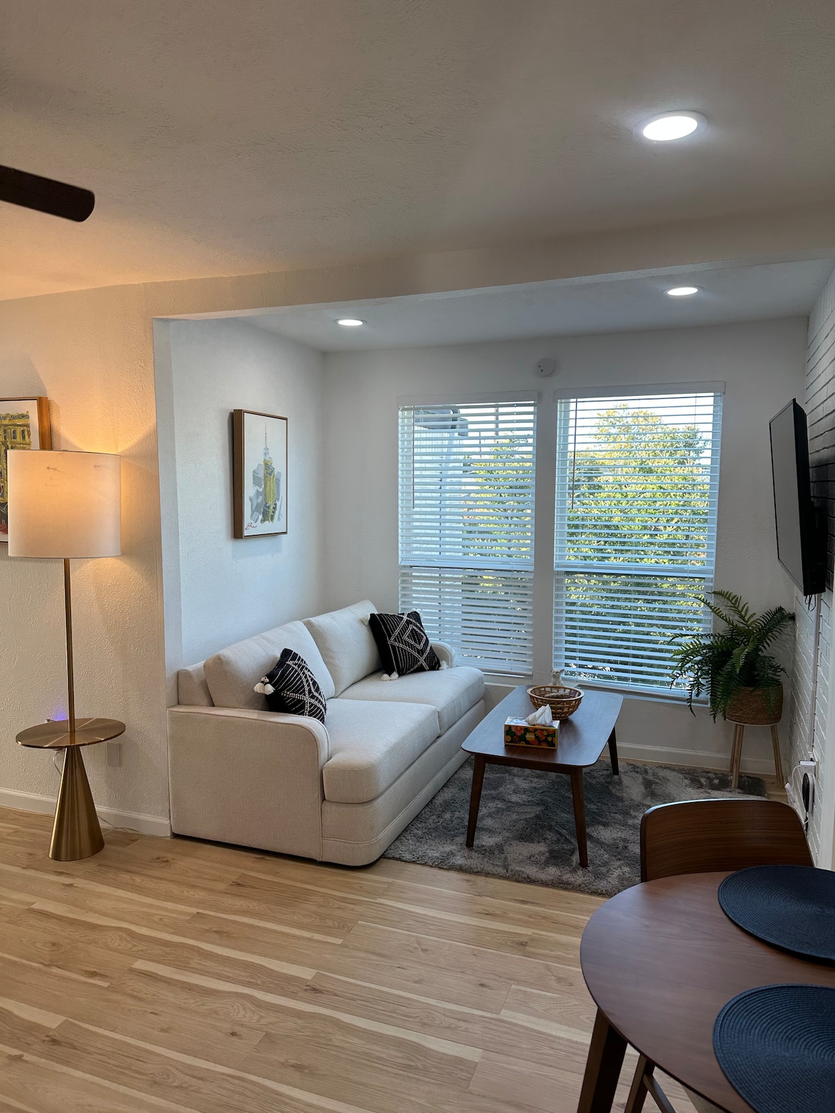 놀랍도록 아름답습니다! 바닥부터 천장까지 이어진 창문이 있는 채광이 좋은 선룸에 앉아 좋은 책과 좋아하는 따뜻한 음료를 마시고 싶을 것입니다. 아름다운 조경의 마당과 거리를 내려다볼 수 있는 전망을 자랑하는 2층 레지던스이기 때문에 트리하우스에 있는 것과 비슷합니다. 산책하는 사람들을 볼 수 있고, 운동을 하거나 좋아하는 털복숭이 친구를 데리고 산책하는 친구들이 이야기하는 것을 볼 수 있습니다. 이곳은 '꼭 가봐야 할' 숙소입니다!
