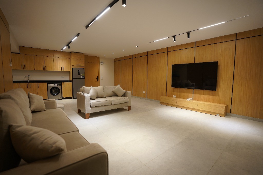 Modern, hotel standard 2 bedrooms apartment in Star-building that's 2nd row on Maadi Cournishe-Nile. The apartment is very comfortable, Full ACs, Coffee machine, Smart Tv. Overall it has an hotel vibes for a lesser cost and a larger space. 5 minutes walking from the Nile, Cafes, restaurants and Main maadi Cournishe Nile street. Services, restaurants, laundry is accessible by delivery to your door as well as walking distance. Enjoy a relaxing stay in central location, stunning Nile view.