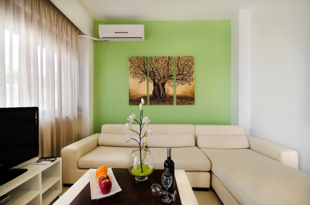 Whether you are traveling in couple or with family or friends feel free to reserve one out of the two "One Bedroom Apartments". Placed at a lower level of the complex, they offer a perfect spot for relaxation. With their private terraces and their cozy interiors that will make you feel at home, it is certain that your holidays are going to be one of a kind.