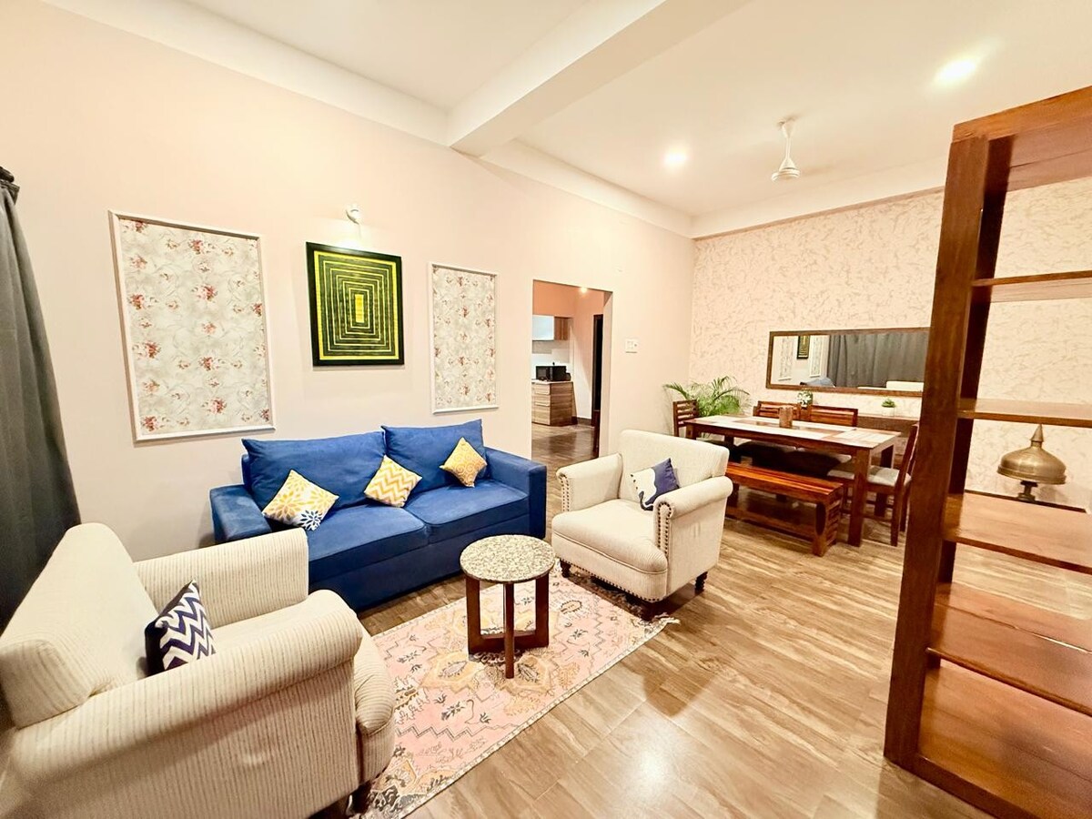 현대적인 인테리어, 복층 높이의 천장, 풍부한 햇살을 자랑하는 구와하티에서 발리에서 영감을 받은 휴양지를 경험해보세요. 이 아파트는 아삼과 발리 문화가 어우러져 있으며, 두 개의 침실, 탈의실이 있는 공용 화장실, 울창한 실내 식물이 있습니다. 호화로운 동네에 위치하여 쇼핑몰과 레스토랑에서 몇 걸음 거리에 있습니다. 65인치 TV로 영화 같은 경험을 즐기고, 편의를 위해 룸서비스를 제공하는 세심한 관리인과 함께 휴식을 취하세요.