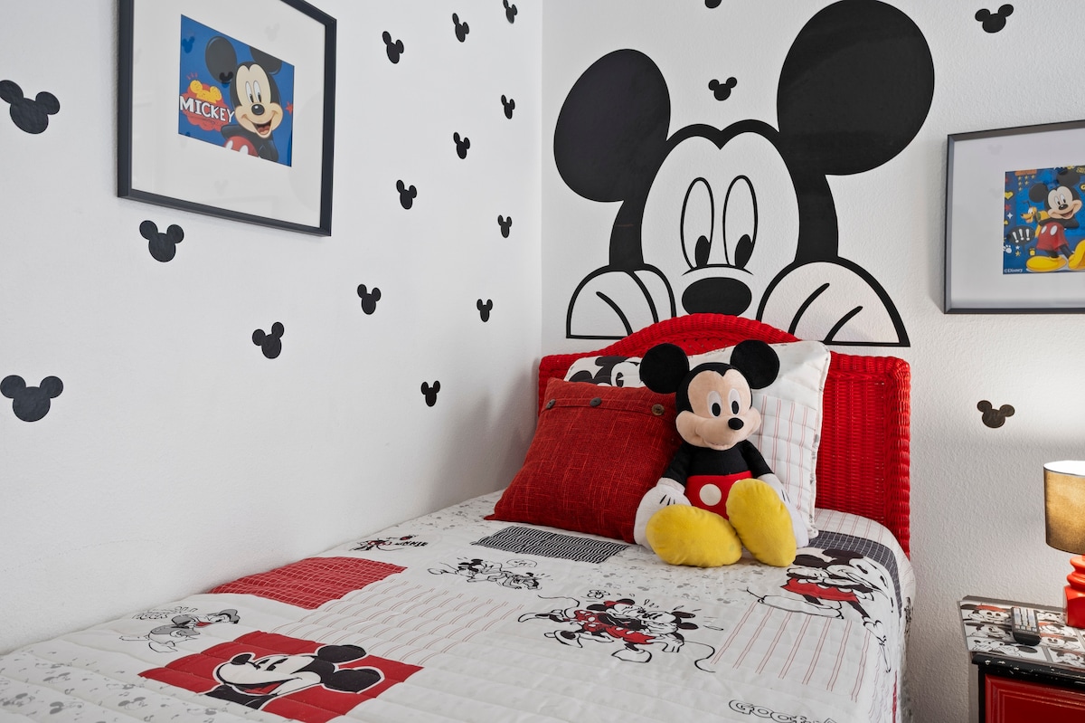 ★ 상상 스테이션에 오신 것을 환영합니다★ 바쁜 부모님을 위한 짧은 글머리 기호 버전 - 침실 5개, 욕실 4개 - 1층은 복도 바로 건너편에 욕실이 있는 퀸사이즈 침대입니다. - 위층에는 침실 3개가 있습니다. 하나는 전용 욕실이 있는 마스터 성인용 객실입니다. 나머지 3개는 아이들 방입니다. 스타워즈에는 전용 욕실이 있습니다. 머메이드와 버즈는 복도 욕실을 공유합니다. - 유모차, 유아용 침대, 유아용 의자, 이동식 아기 침대 무료로 사용 가능 - 클럽 하우스에서 약 5채 떨어진 곳(도보 가능) - 수영장에는 안전 펜스와 문이 있습니다.