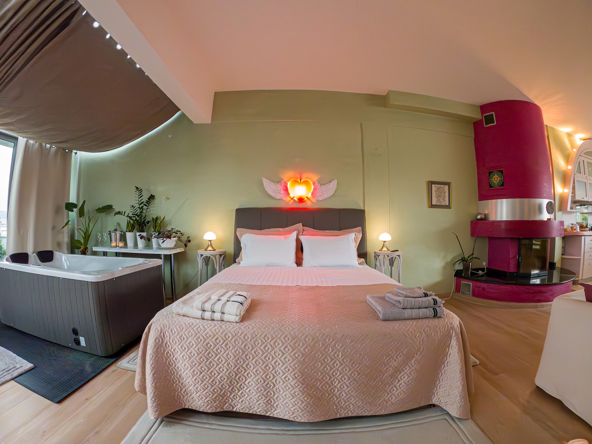 Καλώς ήρθατε στην ολοκαίνουργια πολυτελή σουίτα μας που είναι ιδιαίτερη σχεδιασμένη έτσι ώστε να κανακέψετε τον εαυτό σας και να ξεφύγετε για λιγο από τους αγχώδεις ρυθμούς της καθημερινότητας Ο χώρος Είναι 46 τ.μ πλήρως εξοπλισμένος για να ικανοποιήσει της ανάγκες κάθε επισκέπτη Απολαύστε το jacuzzi της ideales spa και της καμπίνας Χαμάμ που υπάρχει στο χώρο και αφεθείτε στη ζέστη αγκαλιά του νερού και νιώσετε την υπέροχη αίσθηση που προσφέρει το μασάζ από το καινοτόμο σύστημα υδροθεραπείας