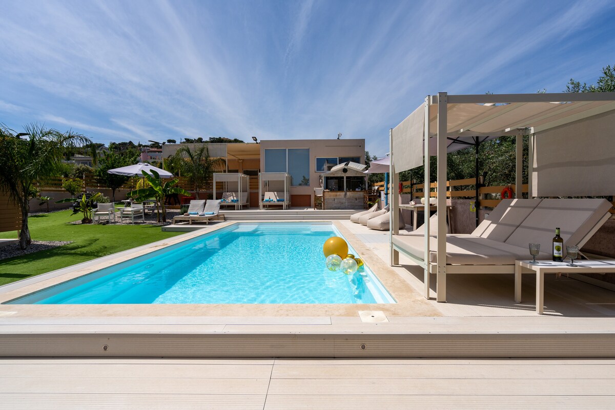 Olive White Villa offers accommodation in Kassandra Halkidiki, just outside Hanioti Village. The upper floor boasts views of Toroneus Gulf. Olive White Villa is located 70m from the beach and 1,7klm from Hanioti Village. The property is suggested to families as it is kids friendly. It belongs to a wonderful complex of houses with olive trees in a sunny garden with lush green grass around the place. Don't miss to enjoy sunbathing while kids are playing in the swimming pool just in front of you!