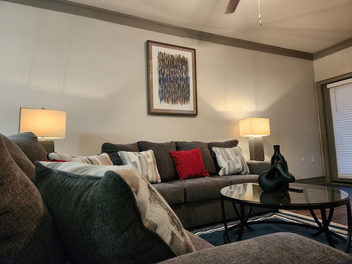 이 아파트는 내 집 같은 편안함을 모두 갖춘 새로운 숙소입니다. I-35에 빠르게 접근할 수 있어 모든 방향으로 쉽게 이동할 수 있습니다. 댈러스나 포트워스에서 북쪽으로 30분 정도 거리에 있습니다. 이 숙소에는 와이파이, 훌루+라이브가 있는 스마트 TV 2개, 세탁기와 건조기, 퀸사이즈 침대, 메모리폼 매트리스가 있는 소파 베드가 있습니다. 시설이 완비된 주방이 있습니다. 반려동물 친화적이며 예의 바른 반려동물은 환영합니다. 게스트 간 소독을 위해 소독용 자외선을 사용합니다. 엄격한 청소 수칙도 준비되어 있습니다.