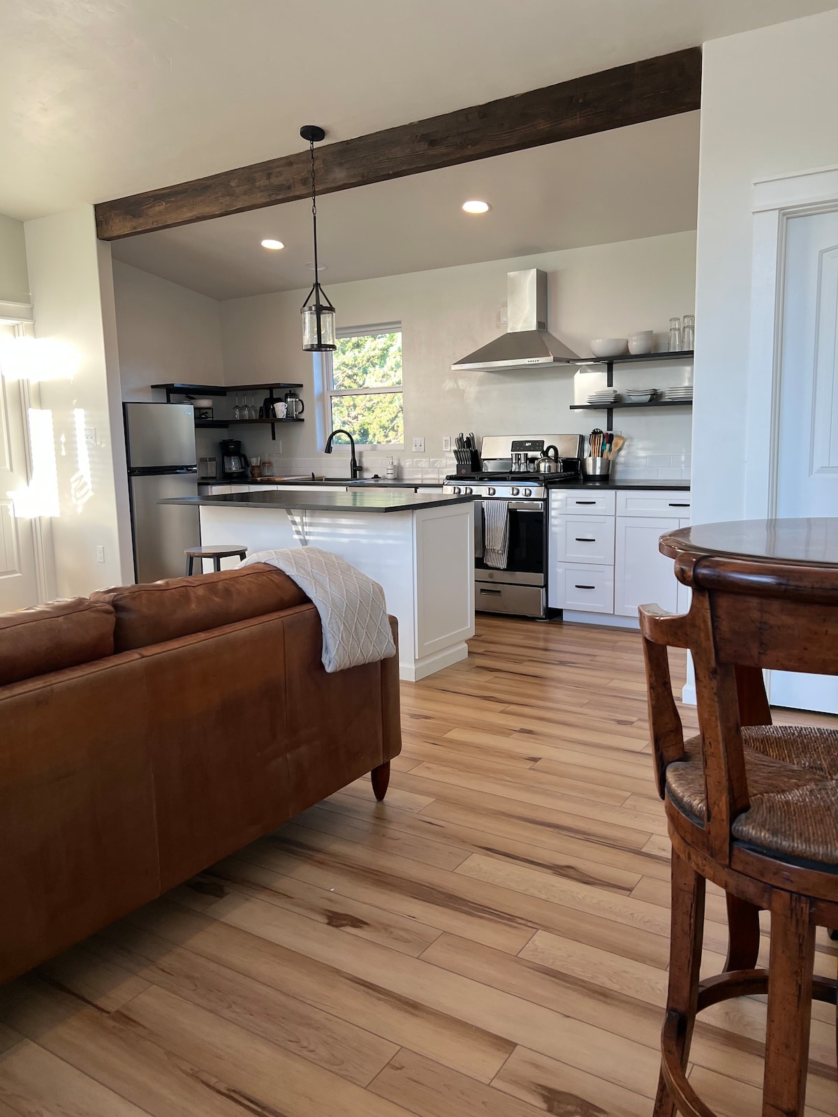 데슈트 강에서 한 블록 떨어진 조용한 주택가에 위치한 새로운 맞춤형 ADU를 즐겨보세요. 리버 트레일을 따라 도심에서 도보로 10분 거리에 있습니다. 현대적이고 밝고 프라이빗한 이 공간에서는 단단한 나무 바닥, 폭포 조리대, 내장형 작업 공간, 난방 타일 욕실 바닥, 55인치 스마트 TV, 바비큐 및 화덕, 무한한 온수의 고급스러움을 즐길 수 있습니다. 노상 주차 및 EV 충전기도 이용하실 수 있습니다. 킹사이즈 침대 1개, 바퀴 달린 데이베드 1개, 퀸사이즈 슬리퍼 소파 1개.