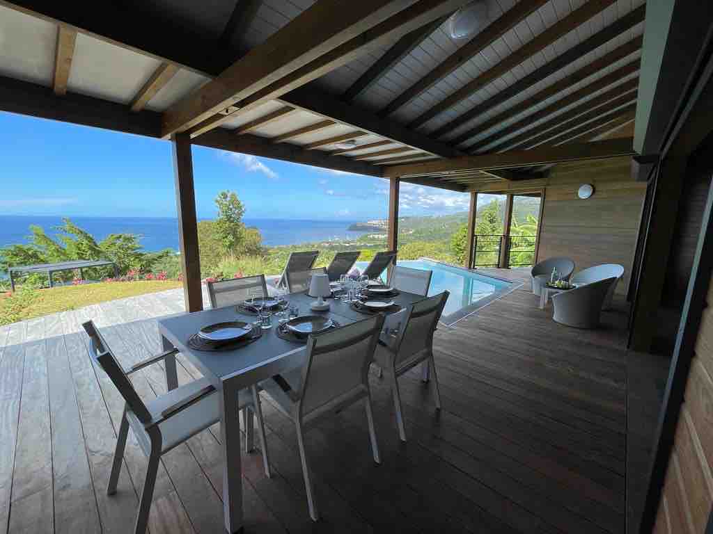 Villa créole, terrasse et piscine privée, vue mer.