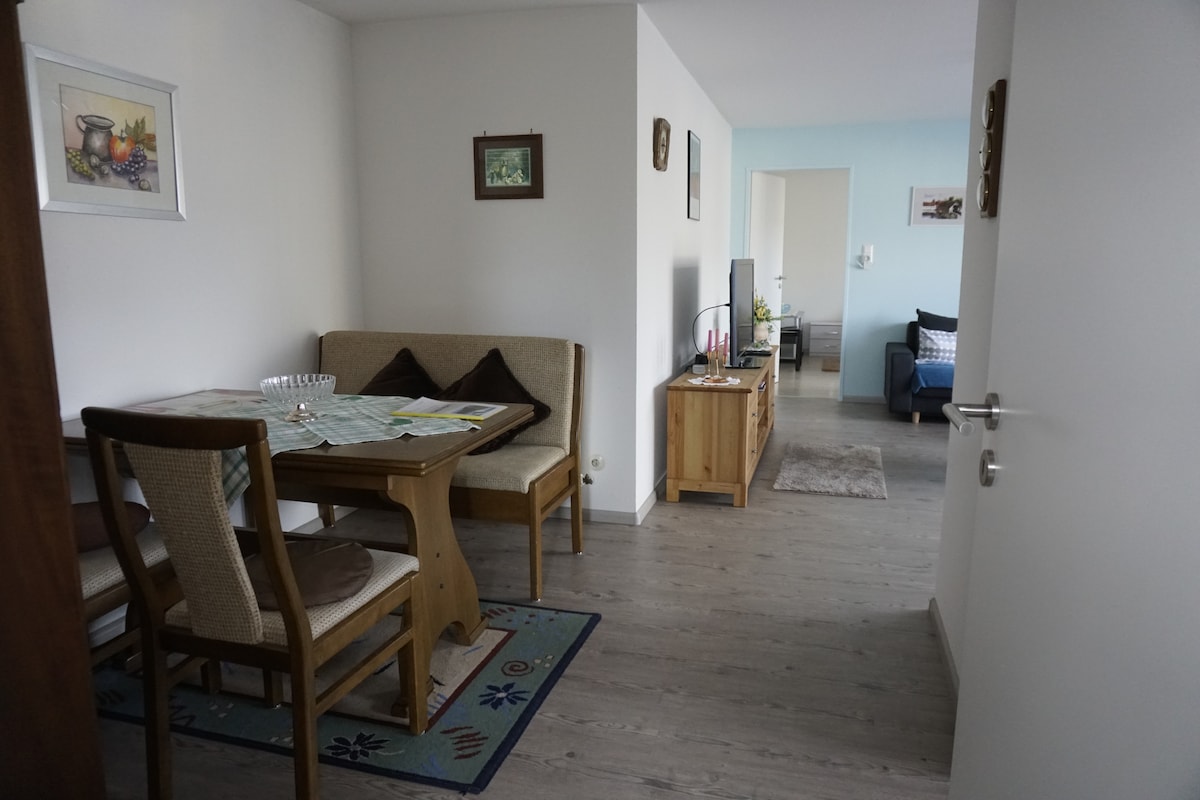 에깅겐에 새로 가구가 완비되고 세련된 2.5룸 최상층 아파트에 오신 것을 환영합니다! 스마트 TV와 와이파이가 있는 넓은 거실 ( Netflix UHD) 에서 편안하게 휴식을 취할 수 있도록 초대합니다. 시설이 완비된 주방에는 좋아하는 요리를 준비해야 하는 모든 것이 마련되어 있습니다. 박스 스프링 침대가 있는 침실 1개는 편안하고 좋은 숙면을 보장합니다. 스위스 국경은 5분 거리에 있으며, 같은 건물에 훌륭한 레스토랑이 있습니다. 무엇을 더 원하시나요?
