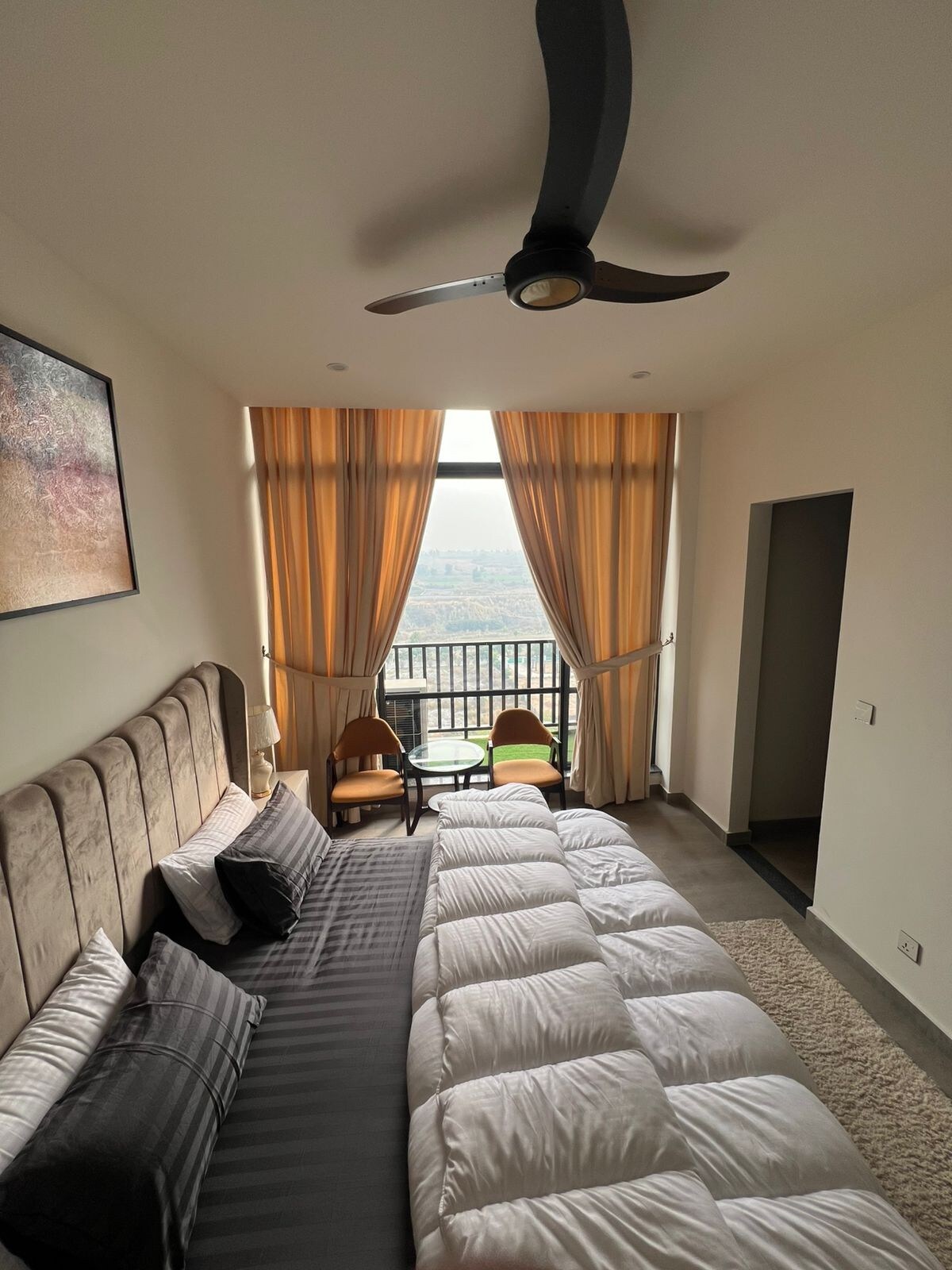 🛏️ 킹사이즈 침대 및 기가 전망이 있는 전용 발코니. 📺 55인치 스마트 LED 및 30Mbps 와이파이. 🍽️ 프리미엄 가전제품이 완비된 현대식 주방. ❄️ 인버터 에어컨 및 💨 자동 공기 청정기. 🔐 디지털 도어락과 우아한 인테리어. ⚡️연중무휴 보조 전원 🔋 🏙️ 제타 몰 위, 기가 몰에서 몇 걸음 거리에 있습니다. 🌄 도시 및 언덕 전망. 가족, 커플 및 기업 고객에게 완벽합니다. 🪪 CNIC 필요(만 18세 이상). 🚭 흡연/이벤트 금지. ✅ 럭셔리하고 고요한 분위기를 즐기려면 지금 예약하세요.
