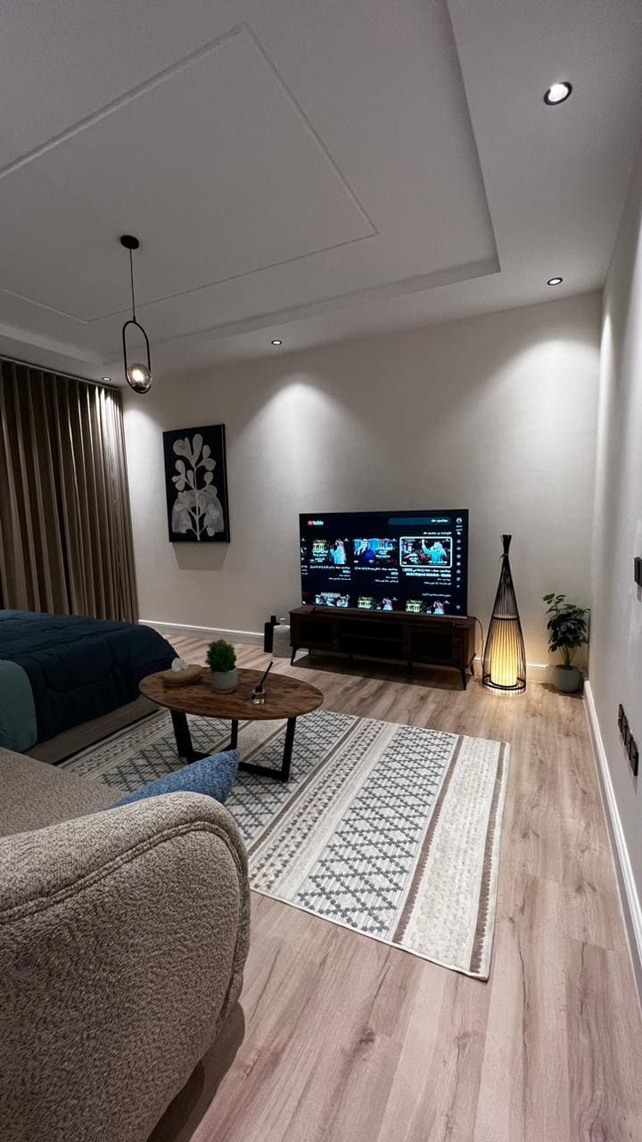 Elegant studio in Al Aqiq District, fully equipped with all amenities, featuring smart entry and a prime location with easy access to Riyadh’s key destinations. 8 minutes from Boulevard 8 minutes from beast land 7 minutes from KAFD 18 minutes from the airport 6 minutes from King Saud University Unlimited High-speed 5G internet available 70 inch screen