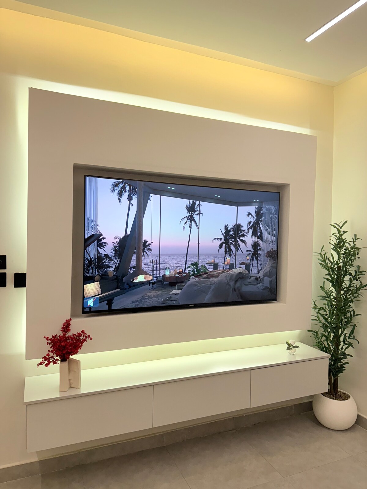 Boho-style retreat in Al Narjis! Cozy 1BR apartment with living area, equipped kitchen, 2 bathrooms, and a 4-seat dining table. Natural plants add freshness, soft lighting and warm tones create a relaxing vibe. Perfect for solo travelers, couples, or short stays. Fast Wi-Fi, AC, and parking included. Enjoy comfort, style, and a peaceful Riyadh stay in a brand-new, inviting space.
