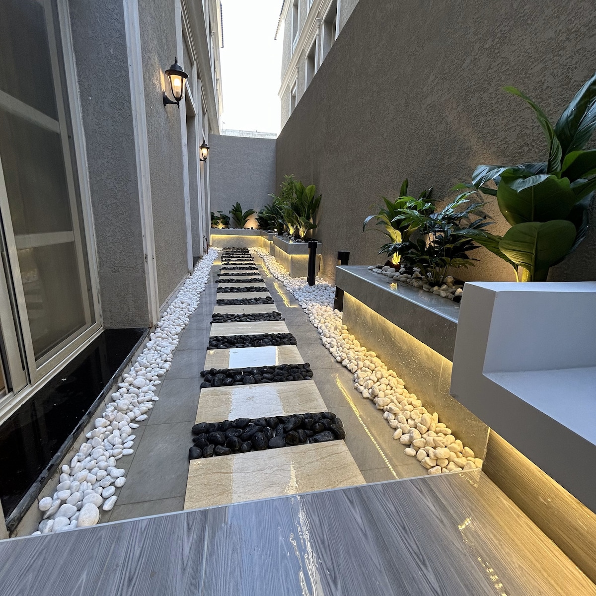 Attention to details: Luxurious Apartment in Al-Majdiah Residence consists of: - Private Garden. - One master room (king bed). - Two bedrooms (queen bed each). - One housekeeper room (single bed). - Four bathrooms. - Living room. - Full kitchen. - Dining table. - Gym, Children playroom, and Lounge. Maintaining high quality: - Nadav mattresses, bedspreads, and pillows. - Samsung smart TV 65 inches. - Free unlimited internet (Wi-Fi). - Free private washer. Wish you a pleasant stay ! 🌹