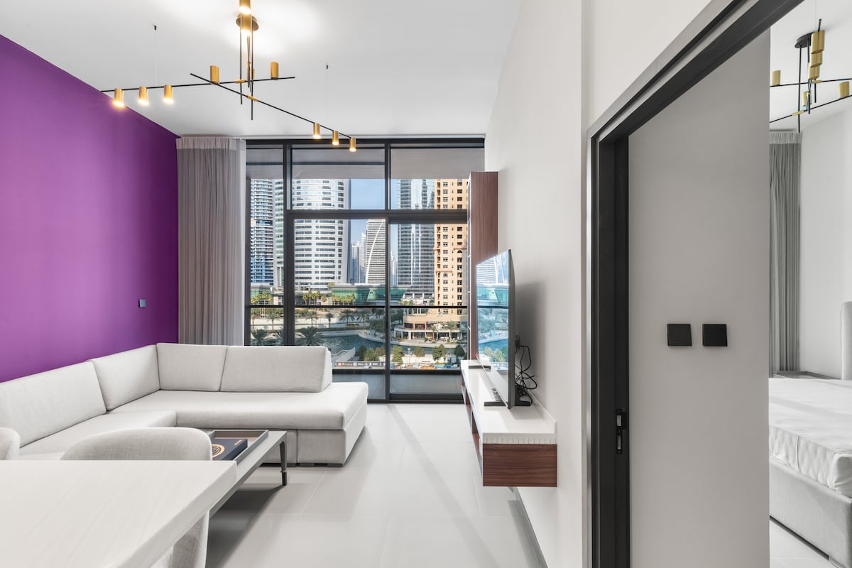 Experience luxury in our newly refurbished studio at JW Marriott Residences, Dubai Marina. Enjoy full Marina views, direct access to Dubai Marina Mall, and a sleek, modern design with premium finishes. Relax at the outdoor infinity pool overlooking the Marina, or stay active in the full gym. The space includes a plush king size bed, fast Wi-Fi, 65" smart TV, kitchen facilities, and luxury bathroom - perfect for both business and leisure stays in the heart of Dubai Marina.