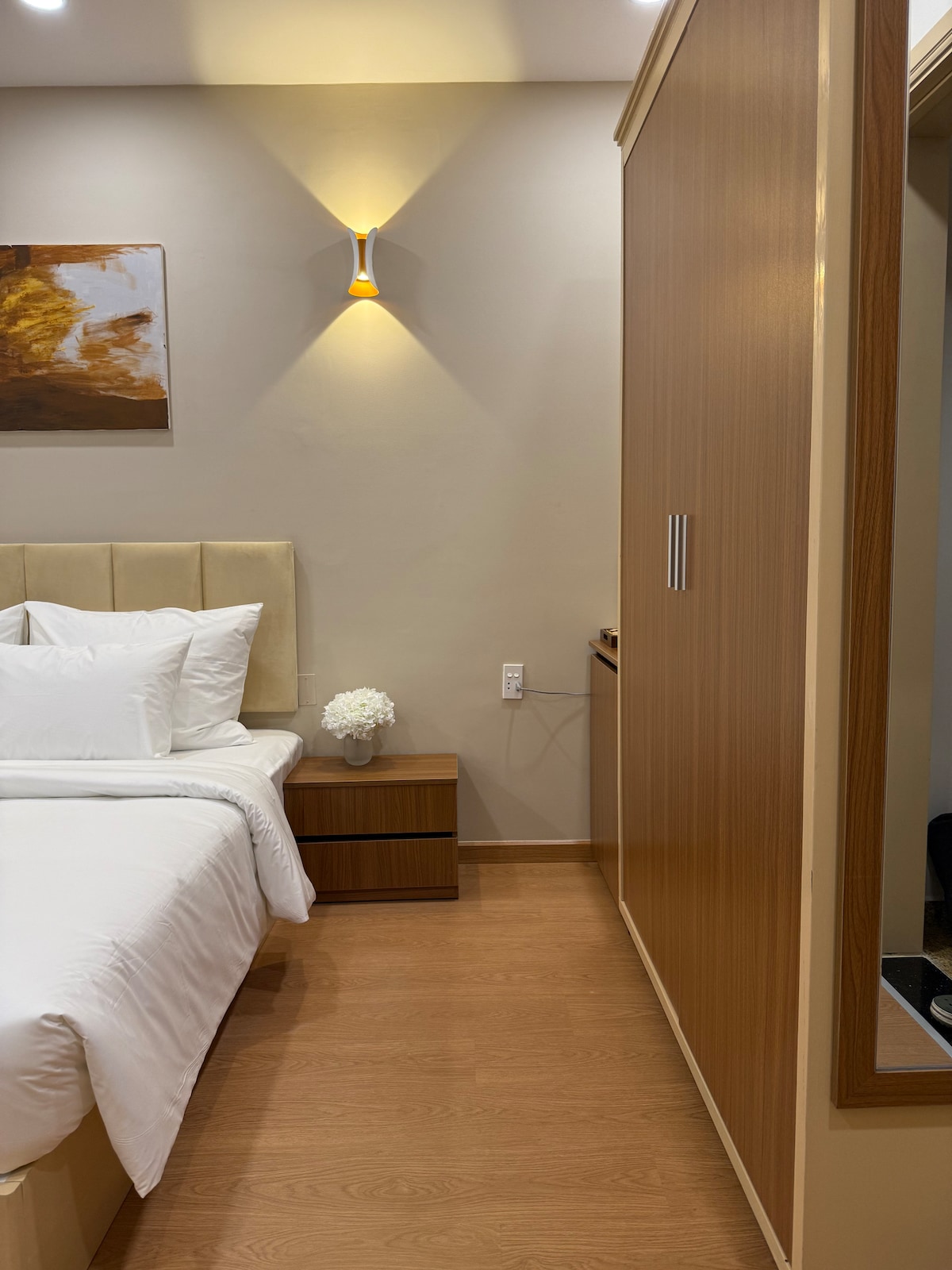 Set on a fresh, tree-lined street in the heart of Saigon, this residence stands out instantly. The building feels nicely designed, and the calm, leafy neighborhood keeps everything cool and peaceful while iconic landmarks stay just steps away. Inside, the suite is bright, elegant, and fully renewed, with every detail set for a long, comfortable stay. Open the curtains and the city spreads out in a wide, beautiful view.