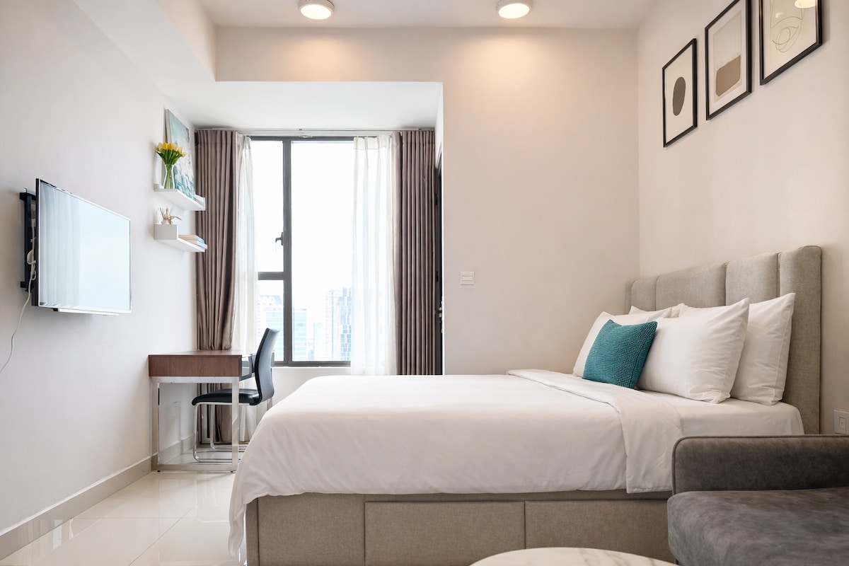 A bright Scandinavian-style balcony studio in Lavida Plus, District 7, just minutes from Phu My Hung, RMIT, SECC, and Crescent Mall. Ideal for couples, solo travelers, or business guests looking for a clean, cozy, and fully equipped stay in Saigon’s most peaceful neighborhood. Thoughtfully designed for both short and long stays, the studio offers modern comfort, natural light, and everything you need to feel at home We also offer free mid-stay cleaning for stays over 7 nights 💚