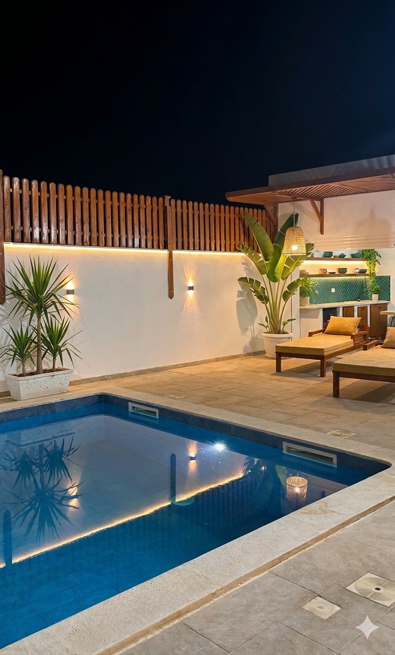 인접한 젠나 빌라와 자키아 빌라는 가족 또는 친구와 함께 최대 12명까지 숙박 가능합니다. 이 두 개의 빌라는 여러 명이 편안하게 머물기에 가장 좋은 방법입니다. 제나 빌라에는 자쿠지가 있는 대형 수영장과 아름다운 폭포가 있습니다. 전체 구성: 제나 빌라: 각각 샤워실과 화장실이 있는 2개의 스위트 + 침실 1개 + 별도의 화장실 1개 빌라 자키아: 침실 2개 + 이탈리아식 샤워실 1개 + 화장실 1개