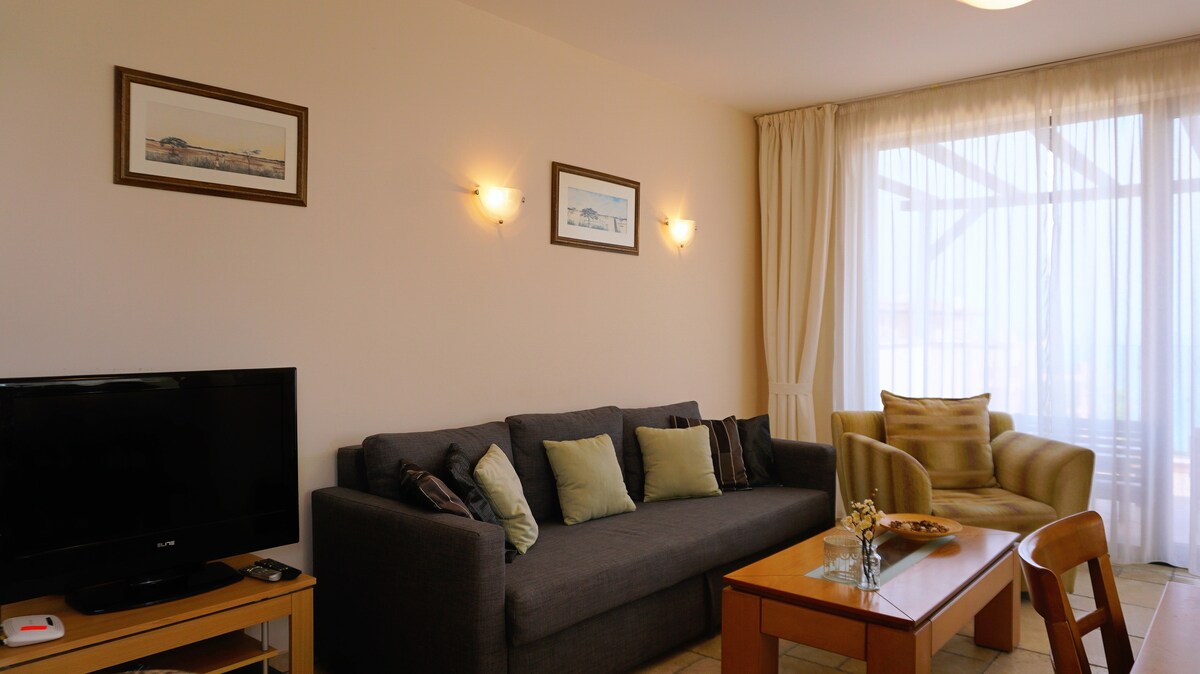 칼리아크리아 단지 내에 위치한 아름다운 수영장 전망을 갖춘 넓은 1베드룸 아파트. 아파트에는 별도의 침실, 밝은 거실 공간, 시설이 완비된 주방, 휴식을 취하기에 안성맞춤인 전용 테라스가 있습니다. 게스트는 야외 수영장, 조경이 아름다운 정원, 평화로운 분위기를 즐기실 수 있습니다. 토폴라, 카바르나, 발치크 해변 근처에 위치하고 있어 휴가를 보내기에 이상적이며, 북부 흑해 연안을 둘러보기에도 편리한 거점입니다.