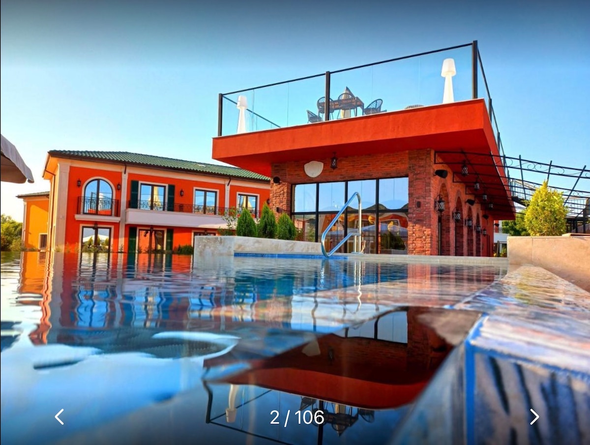 전용 수영장이 있는 이 넓은 숙소는 전통적인 보즈후레츠 전통 마을의 조용한 환경에서 전용 트라키안 클리프 골프 리조트를 내려다볼 수 있습니다. 더블룸 1개와 트윈룸 2개가 있으며, 모두 에어컨이 설치되어 있고, 파노라마 바다 전망을 자랑하는 발코니와 정원, 수영장 공간을 이용할 수 있습니다. 가까운 곳에 수많은 시설이 있지만, 자연보호구역의 일부이기 때문에 전통적인 관광 트랙에서 벗어나 평화로운 안식처로 휴식을 취할 수 있습니다.
