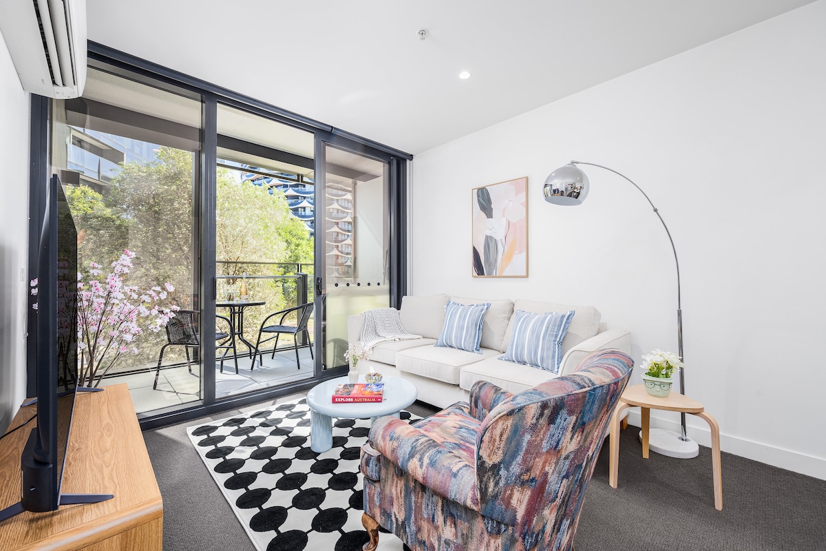 멜버른의 정수를 체험하세요! 저희 숙소는 귀엽고 아늑하며 편리한 위치에 있습니다. 야라강에서 노를 저어 보는 사람들을 구경하고, 헬스장에서 운동하고, 수영장과 스파에서 휴식을 취해보세요. 야라 토 경로를 탐험하고, 무료 트램을 타고 도시 쇼핑을 하고, 차분한 동네로 돌아옵니다. TV는 없지만 커피, 대화, 좋은 책을 즐길 수 있는 깊은 소파가 있습니다. 마리나 레스토랑까지 걸어서 가거나 마블 스타디움에서 이벤트를 즐겨보세요. 도시의 야경으로 둘러싸인 발코니에서 하루를 마무리하세요.