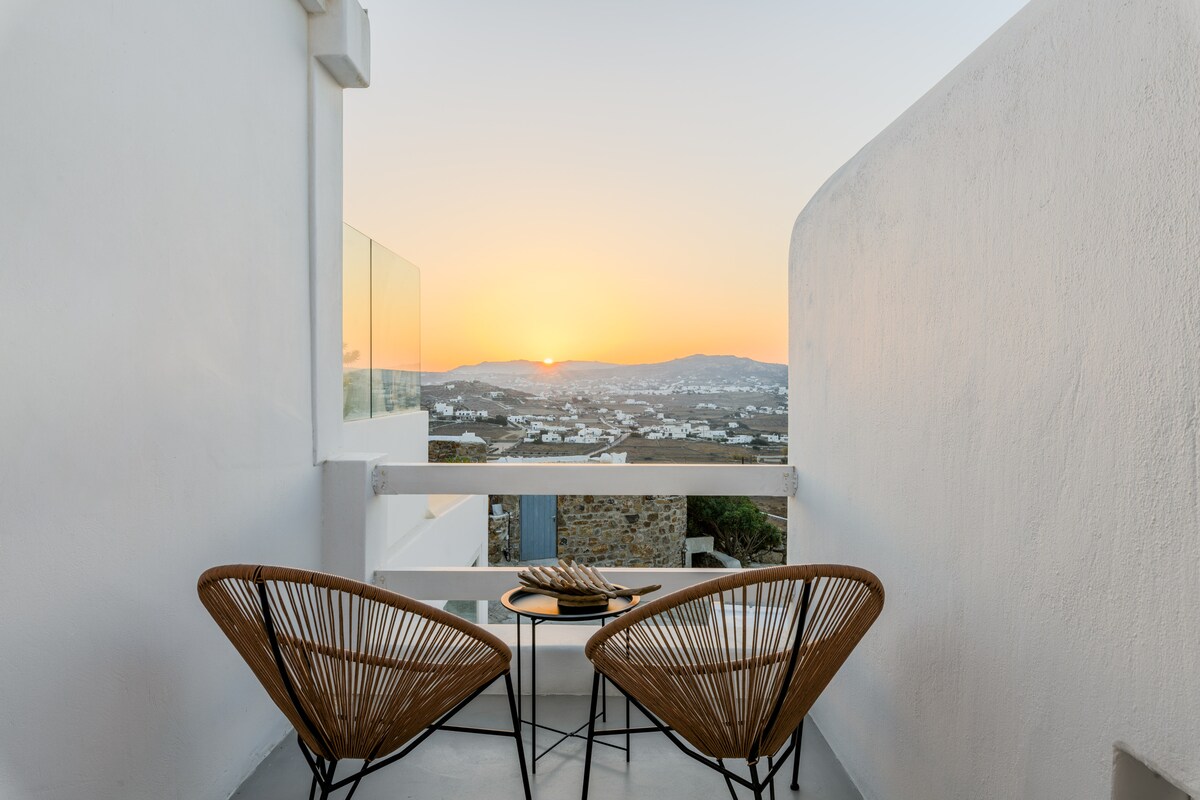 이 지역의 파노라마 전망과 베란다에서 바라보는 놀라운 일몰을 감상할 수 있는 신축 스위트 "암모스". 마수리의 중심에 있지만 조용하고 한적한 곳에 있습니다. 4 ~ 5인 가족을 수용할 수 있도록 설계되었으며, 별도의 침실 1개와 더블 베드 전통 "kratthos" 가 있습니다. 주방에는 게스트의 요구에 부응할 수 있는 시설이 완비되어 있습니다. "AMMOS" 옆에는 4인용 "THALASSA" 스위트도 있습니다. www.airbnb.gr/rooms/27496967.