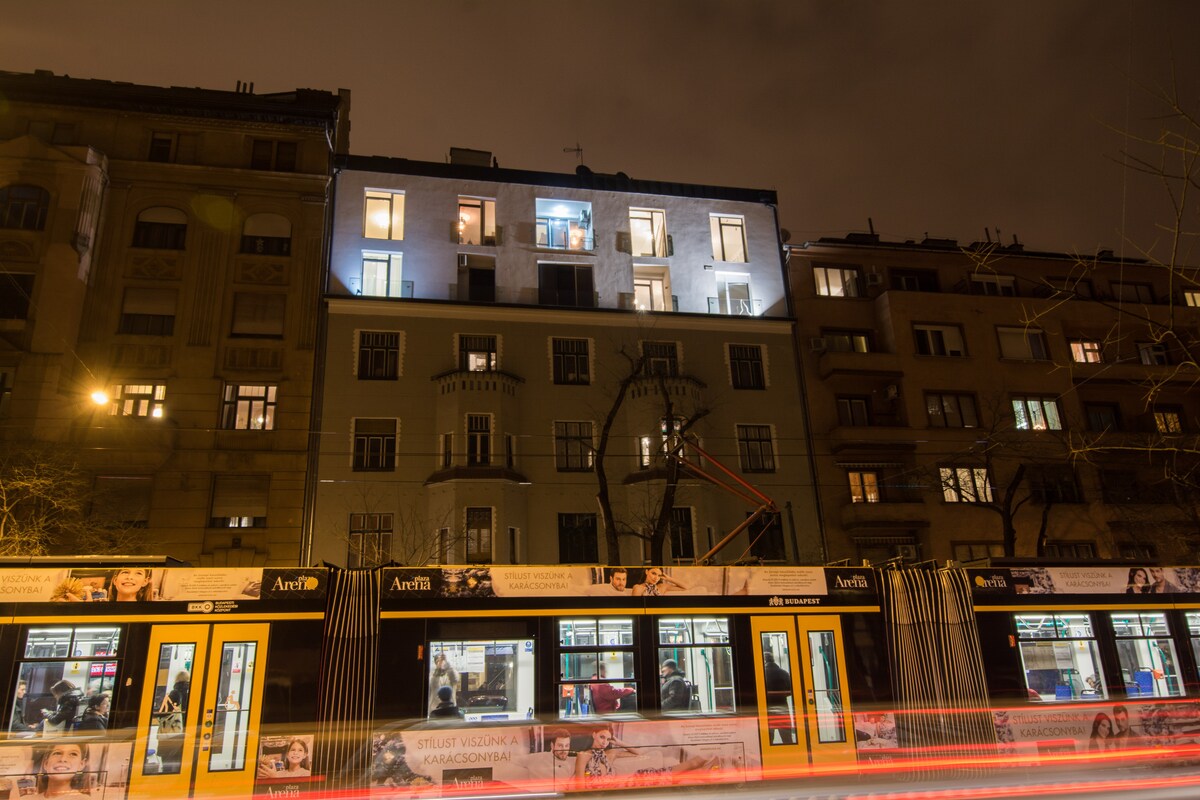 SELF CHECK-IN ANYTIME - PATIO - CINEMA SET - POPCORN This little hip, yet ordinary, fully renovated place is the perfect choice with its patio and cinema loft (HD projector and unlimited popcorn included!) if you like to stay in the bustling inner city, but without the noise and pub crawlers. Only 10 minutes walk from the bar&club streets, metro station, 24/4 tram, etc, yet fully quiet and has its own outside space. It's a family business with my mom, so expect a warm welcome! Sarolta&David