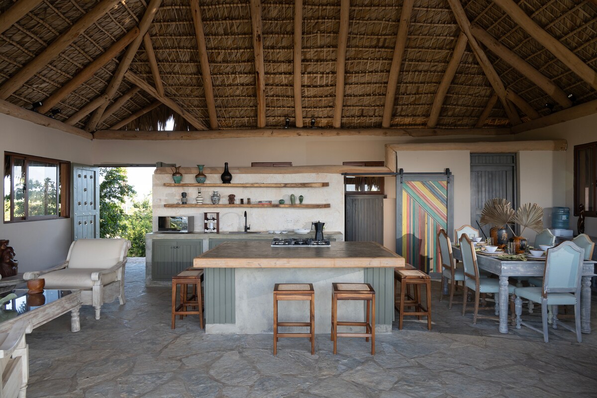 사마나 라스테레나스에 위치한 독특한 해변 저택에서 지상 낙원을 만나보세요. 고요한 하천 위로 자리한 이 멋진 목조 저택은 자연과 편안함이 조화롭게 어우러진 공간입니다. 최대 6명의 게스트를 수용할 수 있는 빌라로, 넓은 침실 3개와 욕실 3개, 추가 화장실이 있어 편리합니다. 숙소 전체에서 숨 막히는 바다 전망을 즐기고, 시냇물 소리에 맞춰 휴식을 취하며, 열대 풍경에 빠져보세요!