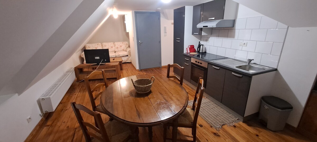 중이층이 있는 매력적인 스튜디오로, 폴 가우긴과 퐁아벤의 그림 학교가 유명해진 화가들의 도시 한가운데에 자리잡고 있습니다. 스튜디오는 저희 집의 윙에 위치해 있으며 두 개의 출입구가 있습니다. 계단 밑에 외부 식사 공간이 있고 정원 가구와 데크 의자가 있는 테라스가 있습니다. 저녁에는 정원과 테라스를 밝힐 수 있습니다. 도심과 박물관에서 200미터 거리에 있으며 항구에서 매우 가깝습니다.