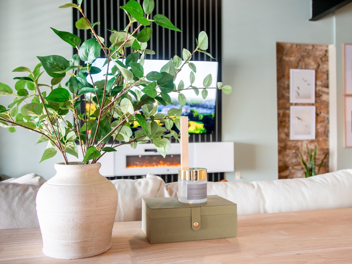 로렌스 시내 중심가에서 한 블록 거리에 있는 에너지와 치유를 동시에 느낄 수 있는 잘 설계된 공간입니다. 유리 차고 문과 거대한 테라스가 내려다보이는 발코니가 있는 현대적인 로프트에 감탄할 준비를 하세요... 온수 욕조, 그릴, 벽난로가 있습니다. 새로운 75인치 프레임 TV, 인조 벽난로, 식사 공간, 풀 욕실, 세탁기/건조기, 킹사이즈 침대, 풀아웃 퀸사이즈 침대. 말 그대로 로렌스 최고의 바, 레스토랑, 멋진 쇼핑몰이 있는 길 건너편에 있습니다. 이곳을 좋아하실 거예요.