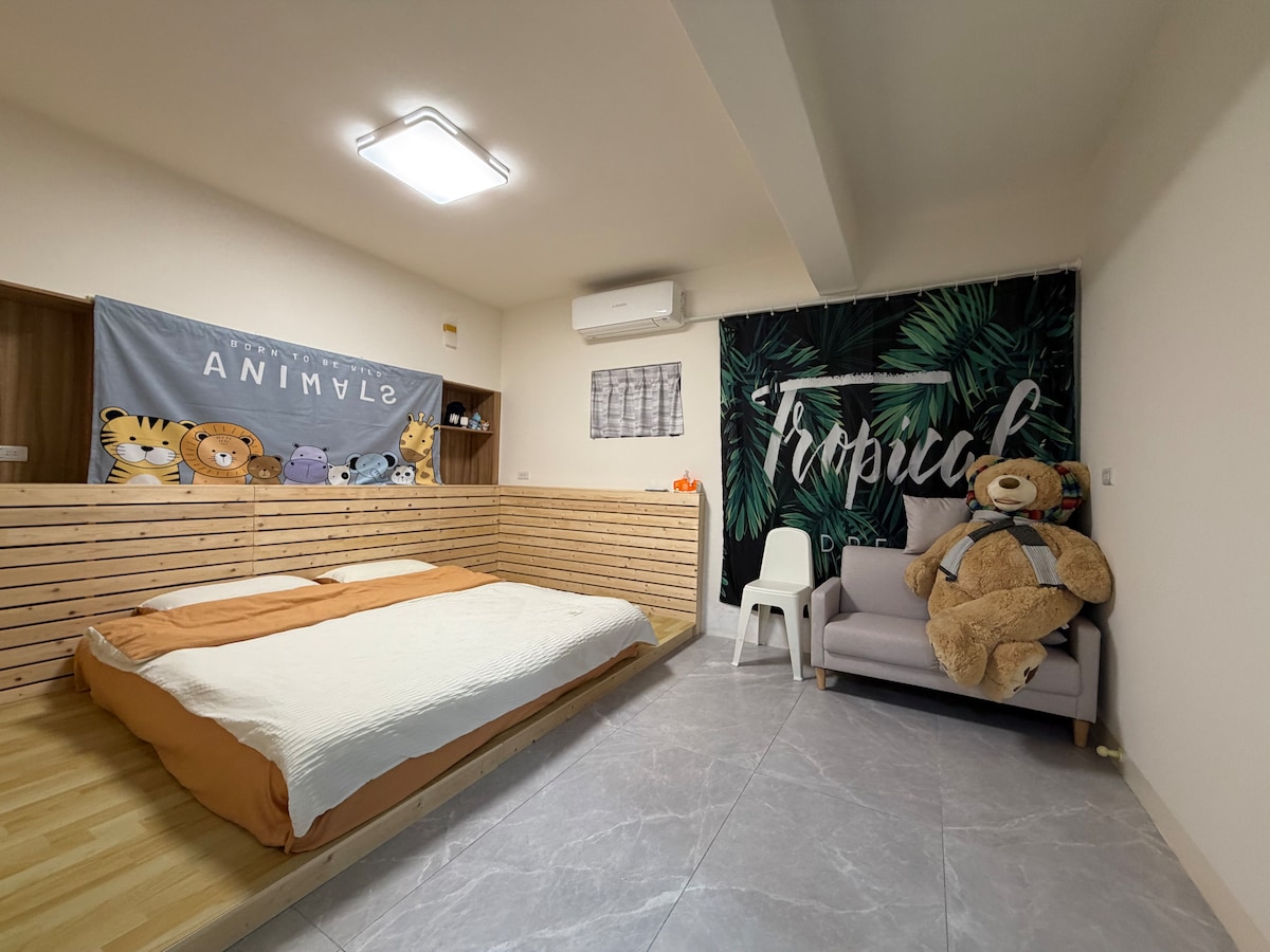 入住這間寬敞又安靜的房源,忘卻所有心中的煩惱。 🏡 房源介紹 歡迎入住我們房源,適合 2–4 位旅客。 專屬獨立空間: 入住這裡,您將擁有整層獨立空間:寬敞大臥室( 1~2 張加大雙人床)、衛浴、客廳與廚房,一切都為您的舒適與隱私量身打造。 免費停車方便自駕旅客,平日寧靜宜人,偶遇雨天,鄰近鐵皮屋頂雨聲會稍大。 戶外樂趣 : 僅接待一組客人,幾乎是私人空間!小庭園內設有盪鞦韆,讓您盡情放鬆;戶外廚房與廁所則讓生活更便利,同時享受自然氣息。 🌿 庭院與放鬆空間 因房源鄰近湖畔,偶有 小黑蚊 出沒,建議旅客自備防蚊噴霧 📍 地理位置與周邊 房源位於安靜的郊區環境: 鄰近 桃花源餐廳 步行可至 近水樓台湖畔森林咖啡 最近的 7-Eleven 需步行約 15 分鐘 若無自駕,出入會較不方便,建議旅客安排交通方式。 🛎 可使用的空間 除您的私人房間外,1 樓戶外廁所/廚房/院子空間皆可自由使用