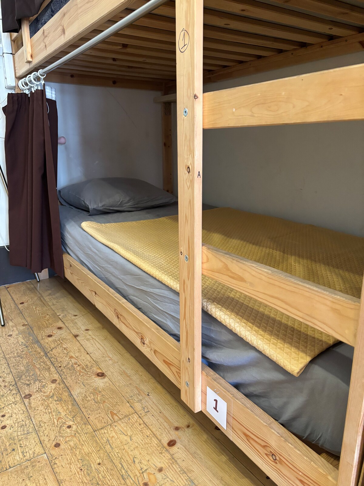 자연 채광이 잘 드는 넓은 침실의 침대. 2 미터 길이의 이층 침대. 각 침대에는 개별 조명, 콘센트, USB 소켓 및 선반이 있습니다. 각 이층 침대에는 프라이버시를 위한 "암막" 커튼과 잠금 장치로 잠글 수 있는 넓은 개인 서랍이 있습니다. (리셉션에서 대여 가능). 다음과 같은 시설을 갖추고 있습니다: 에어컨 난방 초고속 와이파이 복도에 있는 공용 욕실과 샤워실 담요 침대 시트 수건 (추가 요청시 요금 별도) 옷걸이