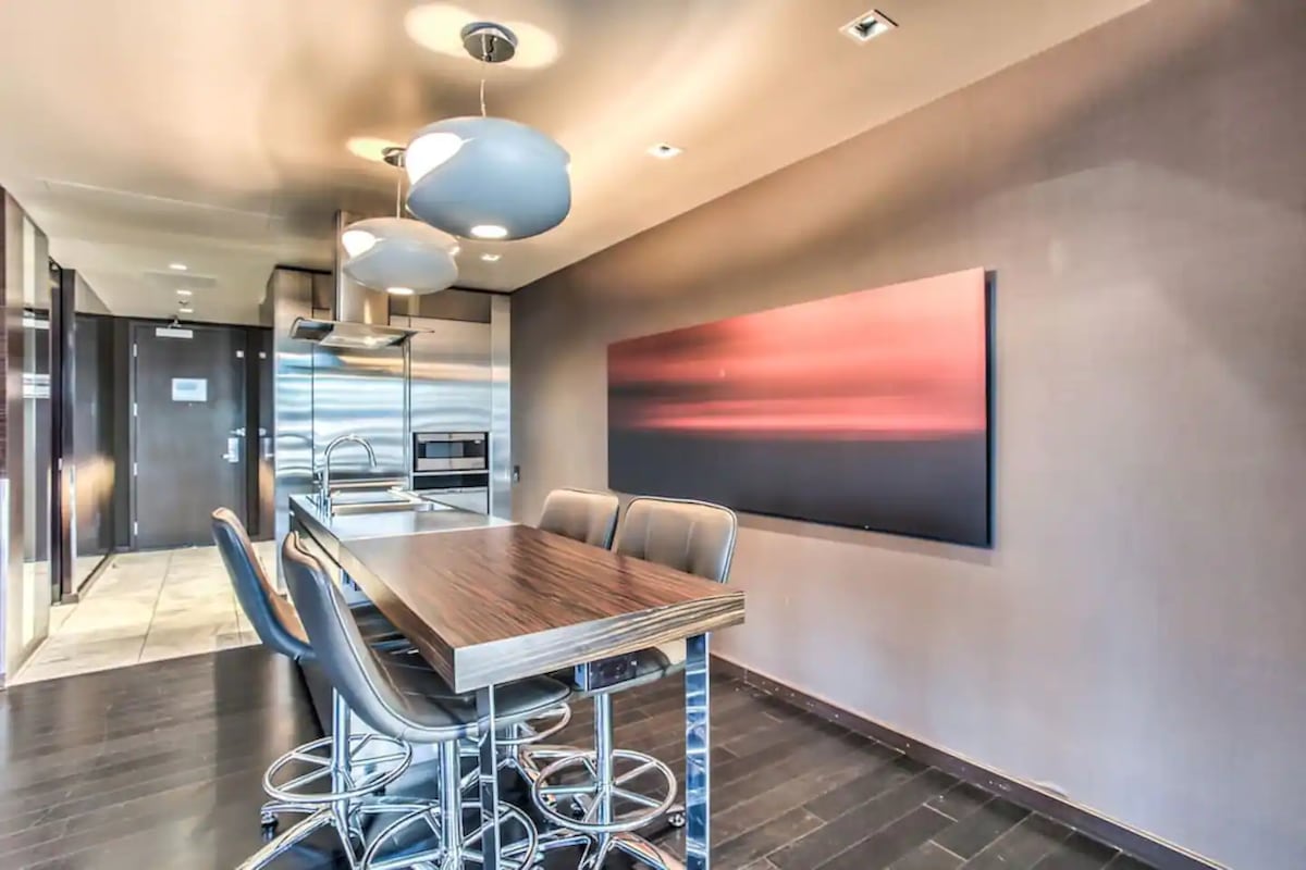 이 초현대적인 침실 1개 욕실 2개의 펜트하우스 스위트는 모두 여러분의 것입니다. 숨 막히는 스트립 전망을 감상할 수 있는 발코니가 있는 넓은 거실을 즐겨보세요! 푹신한 수건, 면 시트, 꿈의 매트리스, 모든 수준의 조리를 위한 모든 종류의 조리 도구가 완비된 주방이 완비되어 있습니다. 수영장 및 헬스장 이용, MGM 카지노 직접 이용, 무료 발레, 초고속 와이파이 등 다양한 엔터테인먼트 옵션 중 하나로 리조트 스타일의 숙박을 즐겨보세요. 세계적으로 유명한 라스베이거스 스트립까지 도보 거리!