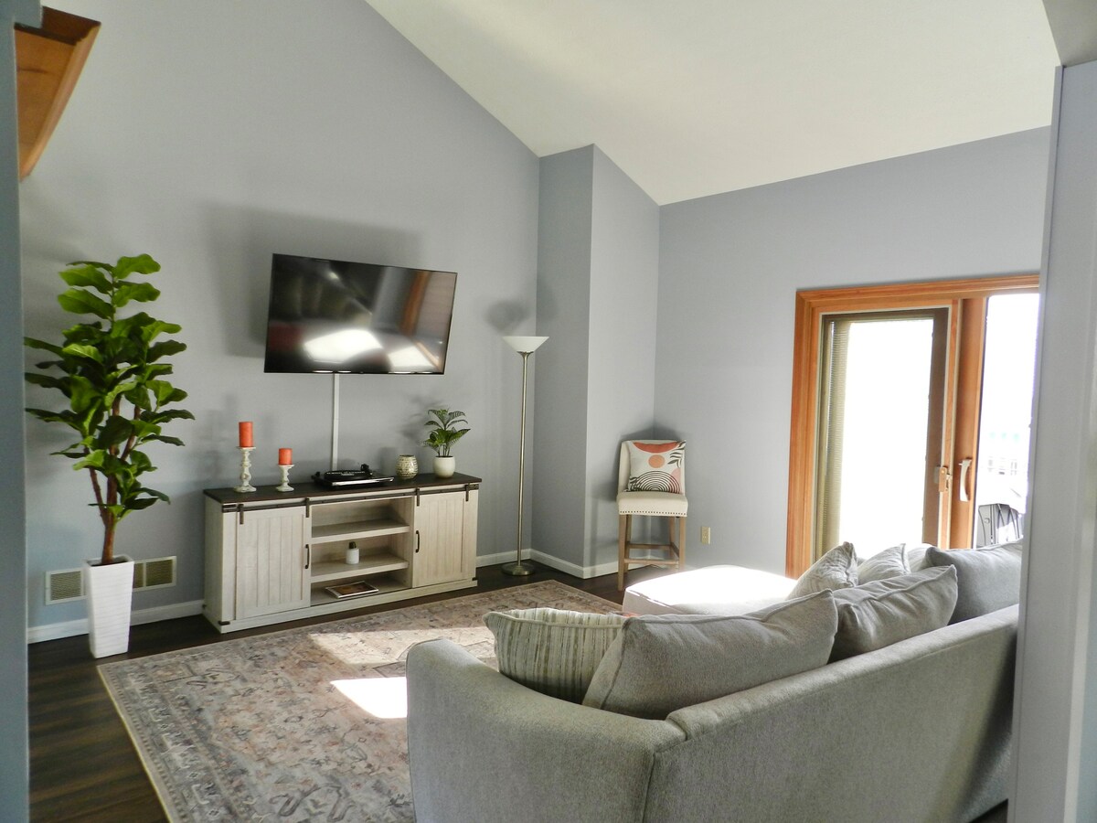Immerse yourself in the charm and comfort of this modern apartment. This spacious 1,510 sqft retreat offers a blend of style and convenience, featuring 2 bedrooms equipped with plush bedding and en-suite bathrooms. Revive your spirit in a fully equipped kitchen, relax in the family room by the smart TV and fireplace, or unwind under the ceiling fans after a day of exploring Louisville's attractions. Very close to Churchill Downs, perfect to celebrate the Derby festivities and fun!