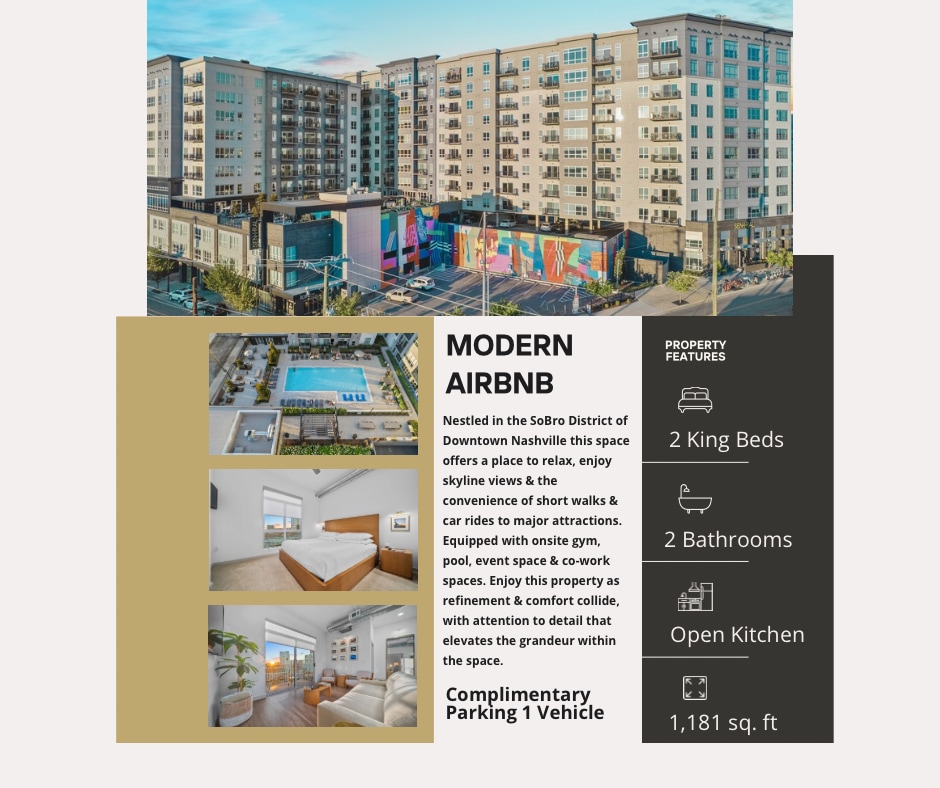 Indulge in this spacious downtown Nashville Airbnb furnished by RH. Discounts for qualifying stays, message host for details along with amenities that cater to the needs & desires of our guests. From luxurious bedding & upscale appliances to high-speed internet & complimentary parking every detail was carefully curated to ensure a comfortable stay. The Airbnb is located in a prime location, which makes for short walks! Come relax & enjoy! Permit # T2022056620