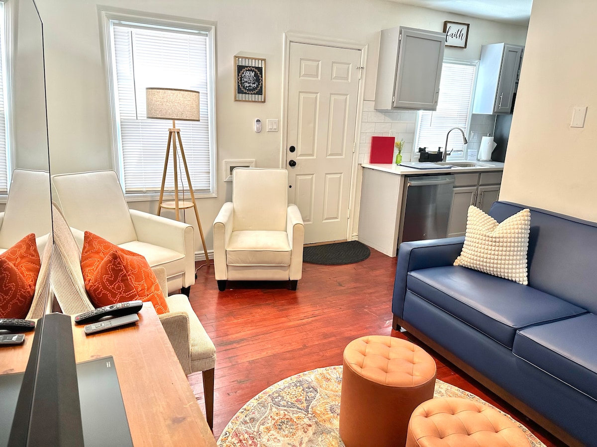 조용하고 유서 깊은 동네에 자리 잡고 있으면서 도심에서의 궁극적인 경험을★ 누리세요. ★ 루스벨트 로우 예술 지구, 박물관, 스포츠, 바/레스토랑, 음악 공연장(풋프린트 센터, 체이스 필드, 더 반 부렌, 오르페움 시어터) 1마일 거리 ★ 전용 출입구 + 주차장 + 파티오 + 거실과 편안한 퀸사이즈 침대가 있는 500평방 피트 게스트하우스. ★ 주방 시설 완비 + 식탁 + 풀사이즈 세탁기 및 건조기 + 아늑한 파티오