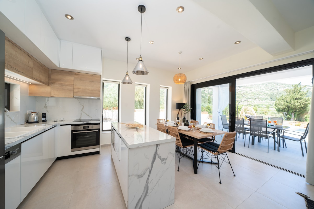 아이코닉 빌라는 진정한 토착 분위기에서 흠잡을 데 없는 건축물과 고급 시설을 갖추고 있어 집과 고급 빌라의 라이프스타일을 결합하여 편안한 숙박을 제공합니다. 높은 곳에 위치하여 포도원, 사이프러스 나무, 언덕이 있는 전형적인 케팔로니아 풍경의 숨 막히는 전망을 제공합니다. 이 빌라는 극적인 미르토스 해변에서 가까운 곳에 있으며 주요 케팔로니아 관광지와 가깝습니다.