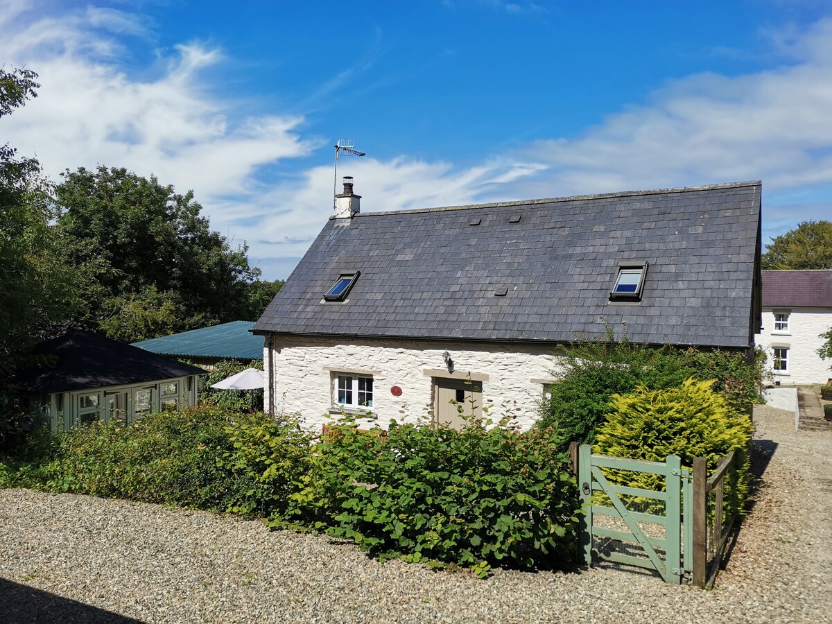 Romantic Pembrokeshire cottage in beautiful 3-acre grounds with sauna, natural swimming pond (rain dependent), games room & kayaks. Hill walks on the doorstep, stunning beaches & cliff walks nearby. Stargaze from a comfy king-size bed. Snuggle up by a wood-burning stove (free wood). Large bathroom with bath, shower & underfloor heating. Well equipped kitchen with coffee machine. Covered outdoor seating area with firepit & bbq. Fibre internet, smart TV (Netflix etc). 2 well-behaved dogs welcome.